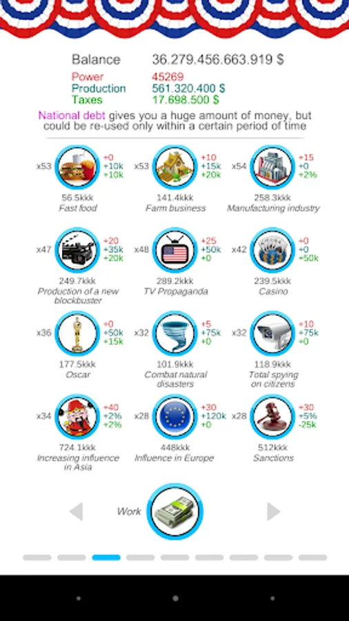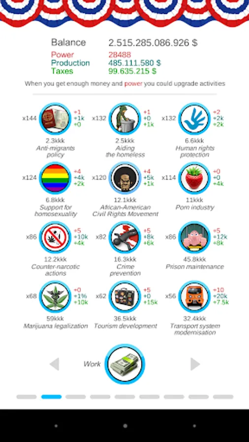 Experience yourself as a politican - earn money, collect taxes and exceed authority! Develop your country, extend the sphere of influence and lead the country to the world domination!