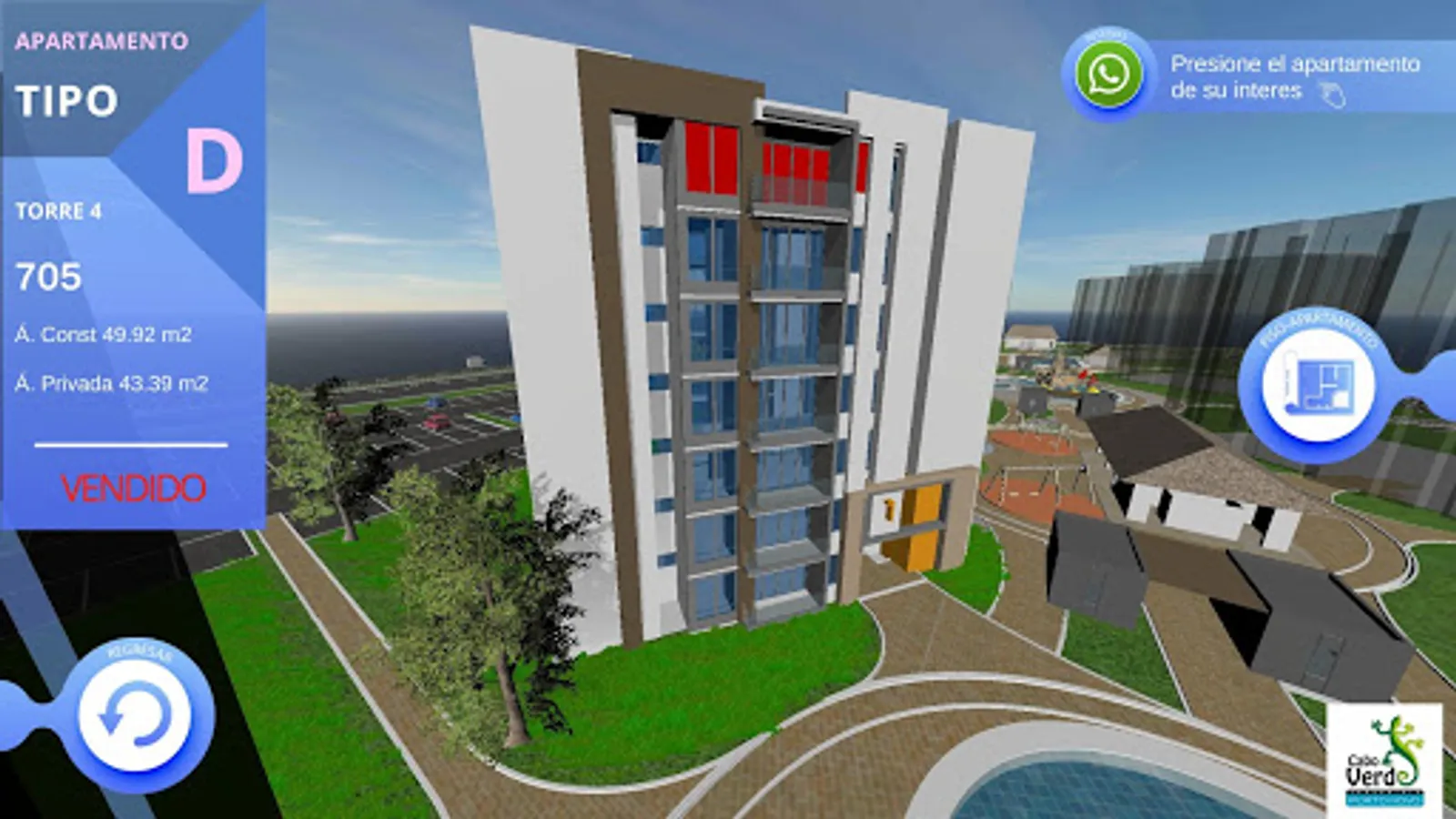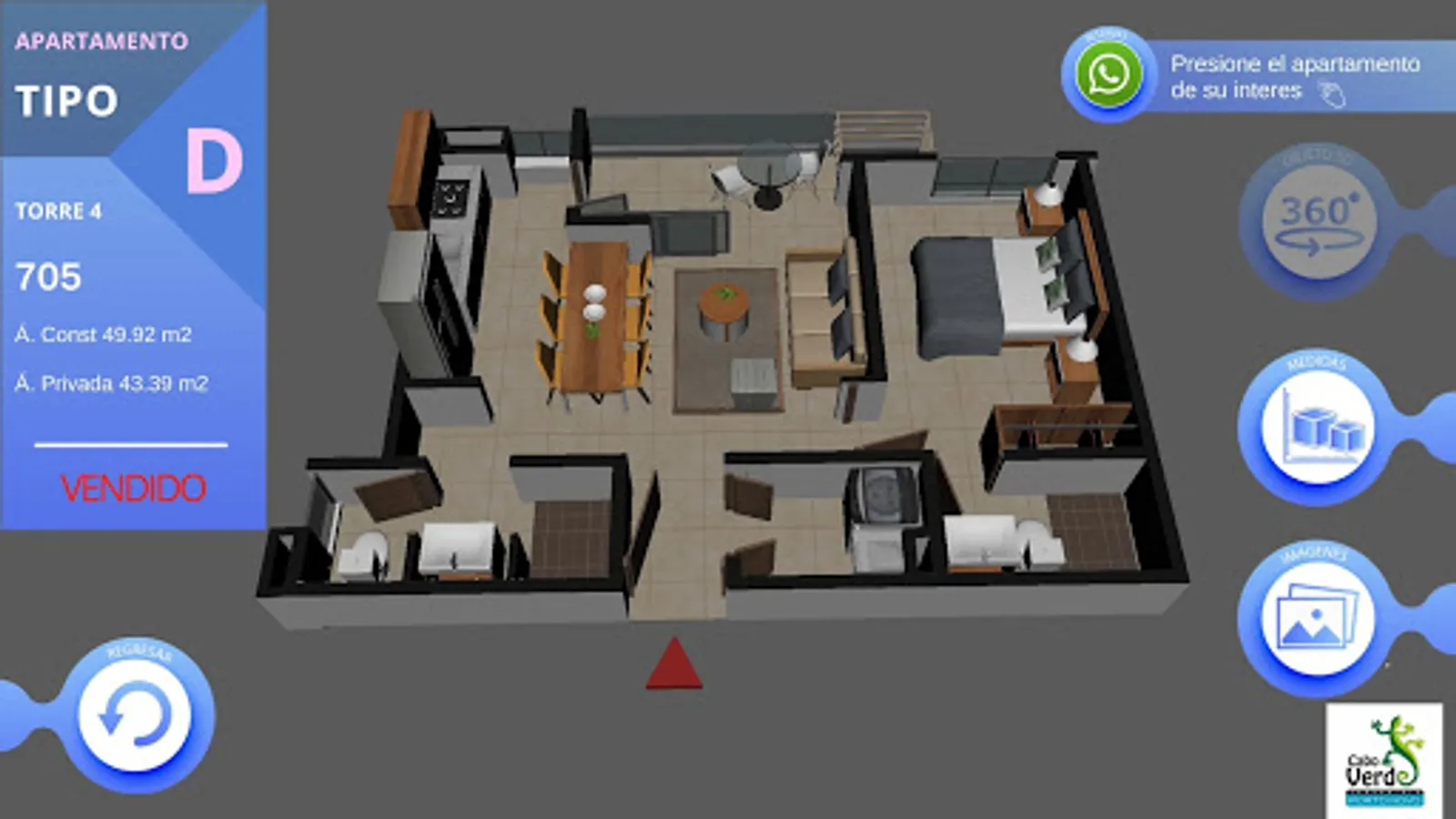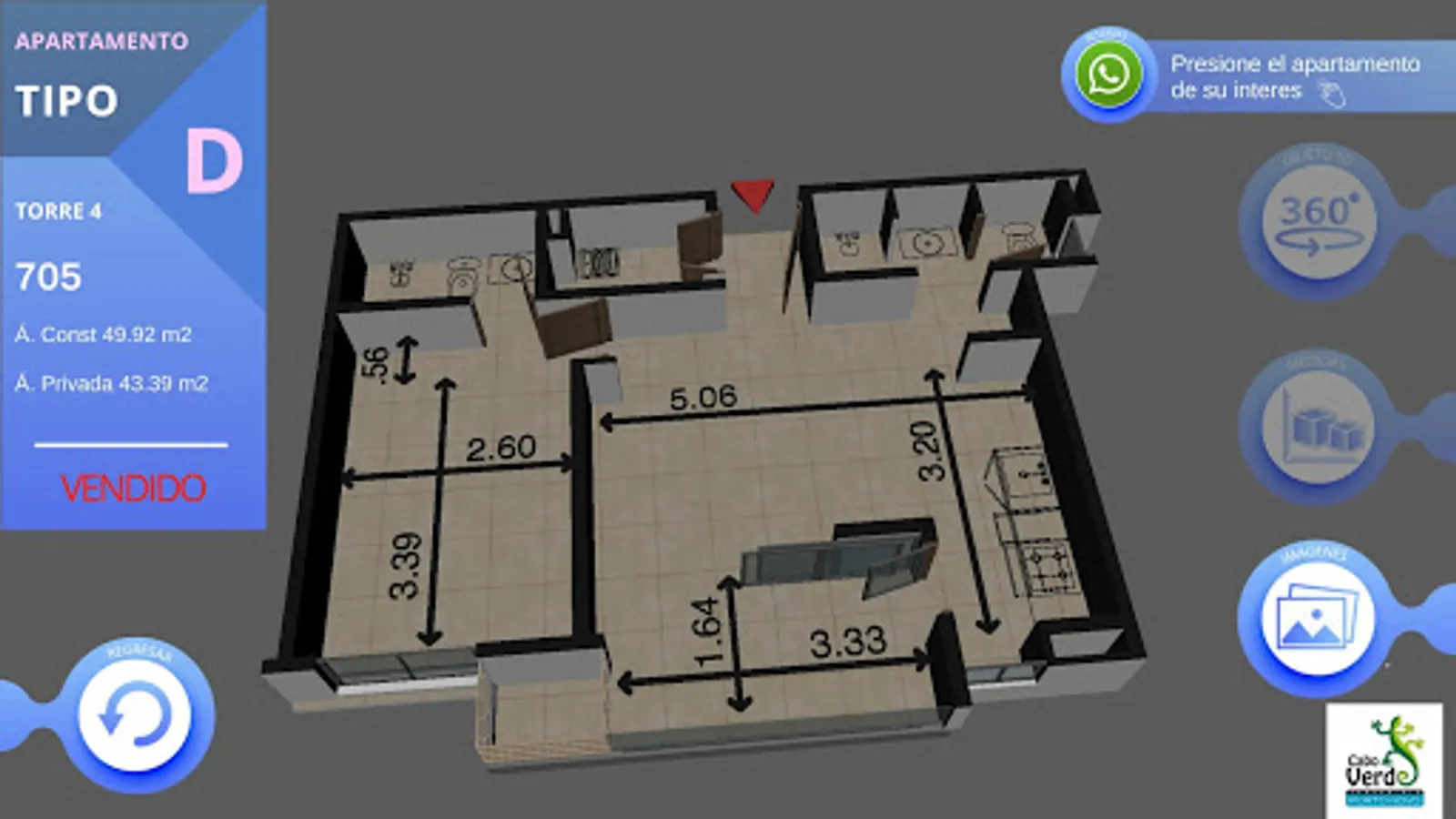 This application allows viewing the active projects for sale of the construction company OIKOS, allowing the user to interact with the common areas, building and inside their apartment, providing the user with metrics and locations of their next apartment.
