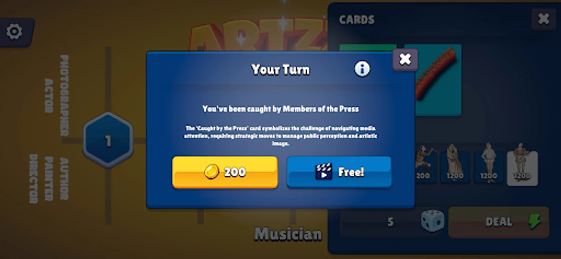 ARTZZZ is an extraordinary game where imagination, creativity, and art enthusiasts come together! This exciting game allows players with interests in music, cinema, writing, photography, acting, and painting to embark on their own artistic journeys. Get ready to make skillful moves on your way to the pinnacle of the art world!