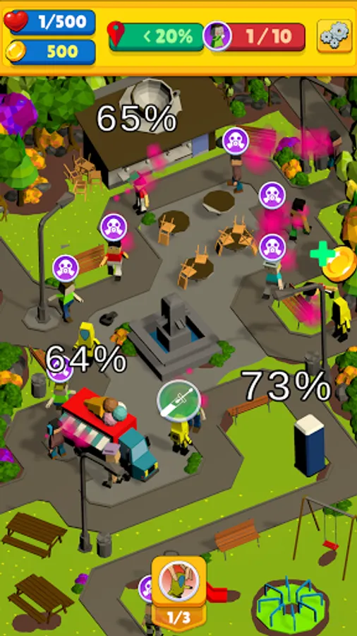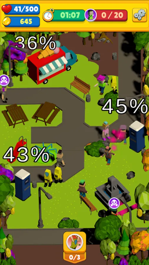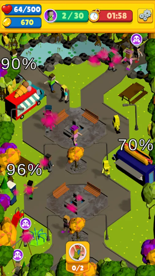 The city is divided by four districts and each district contains it's own challenges. Unlock them all one by one and face the source of the Purple Fever!