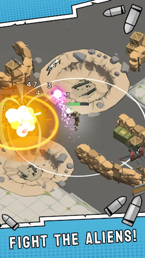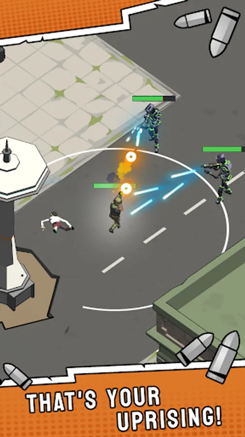 Step into a post-apocalyptic world overrun by alien invaders in “Uprising: Survivor RPG”, a thrilling top-down shooter with RPG elements. Become the last hope for humanity as you take on the role of a lone hero with an extraordinary power - the ability to respawn in an underground bunker, a gift bestowed by one of the last surviving human scientists!