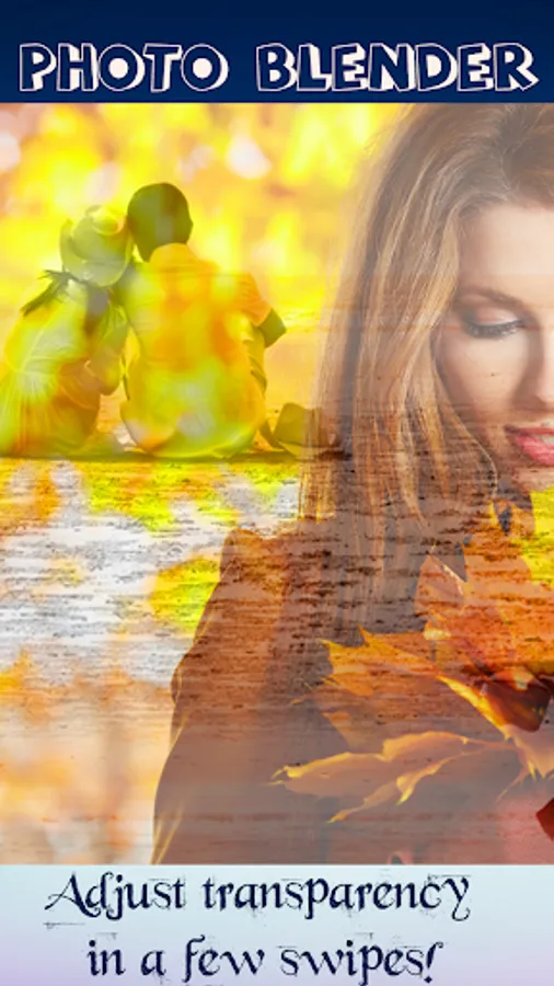 ⌘ Now you can blend two pictures into one and achieve a "double exposure" effect with pictures overlapping thanks to a brand new "photo editor" for your Android™ device! Photo Blender Pic Editor Cam is an awesome "photo blender" app that will help you "combine photos" and make a work of art in a few swipes. Take your selfie camera, get this pic blender "Photo Blender Pic Editor Cam", change transparency and start an exciting adventure of "photo editing". "Merge photos" with amazing "photo effects" and let your creativity run wild! Add a fade effect, join two favourite photos, put a transparent crease – have the time of your life and make your memories last forever! Share your artistic "photo montage" with friends and enjoy your photo fusion time free of charge!