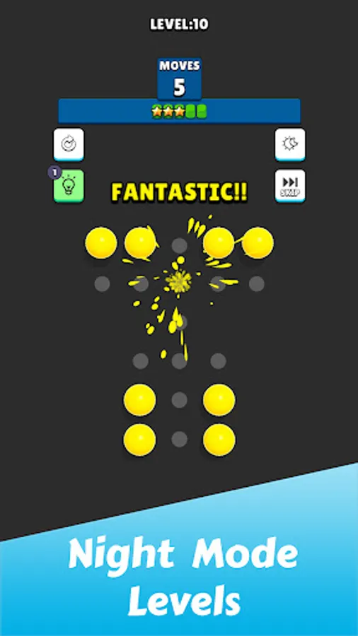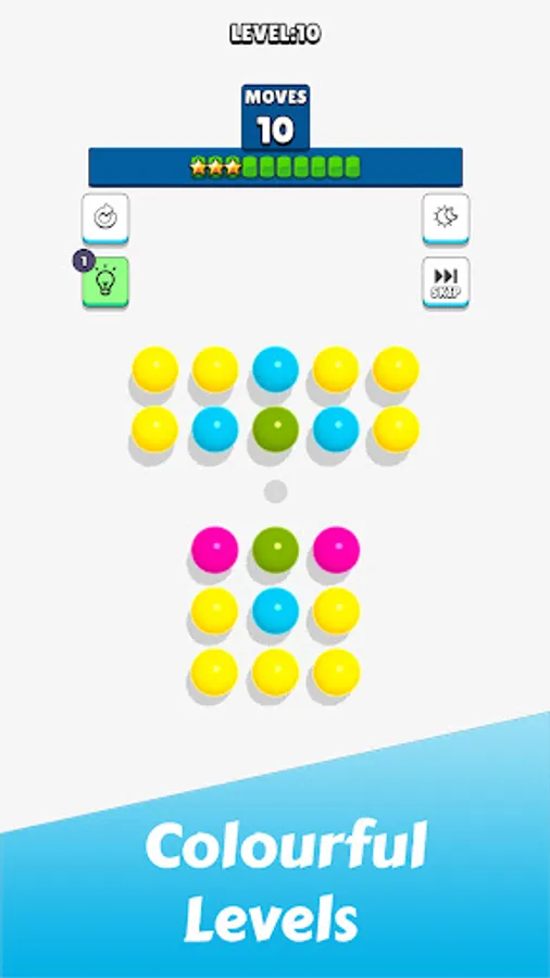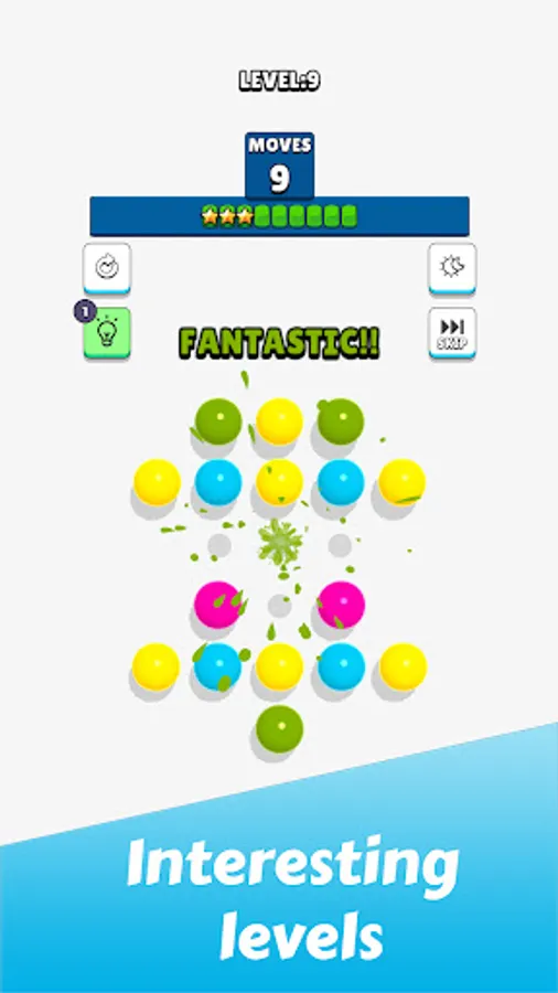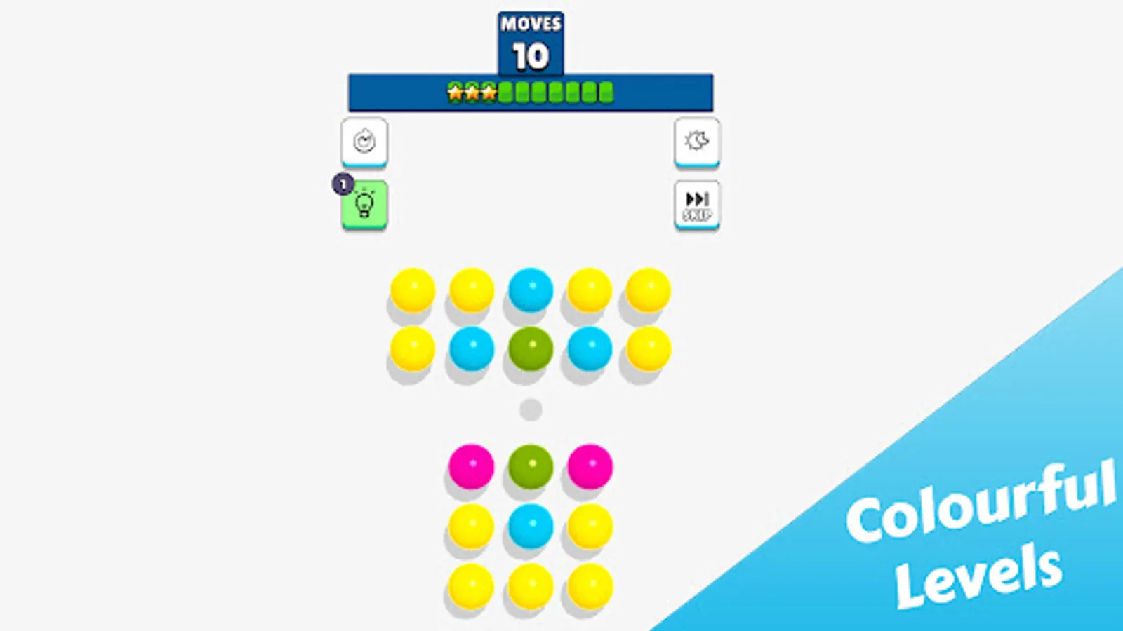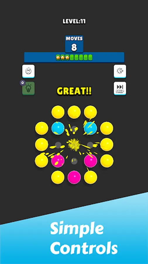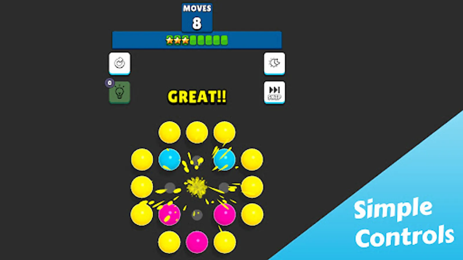 Simple rules and controls, to complete the level you need to Tap on the intersecting point of the color balls with given moves and finish the level