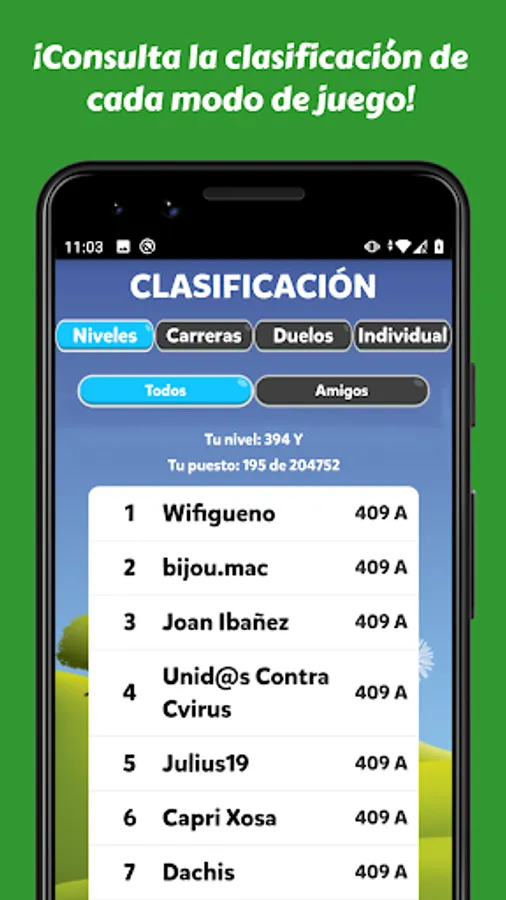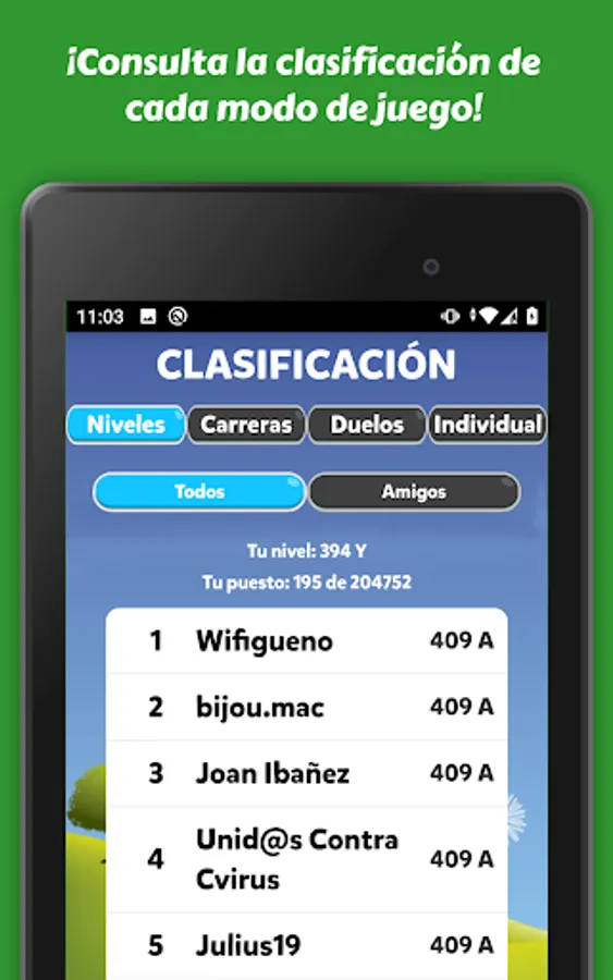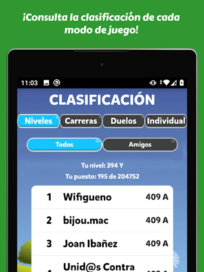 - Rankings: Different types of rankings to compare yourself with your friends or with all the players.