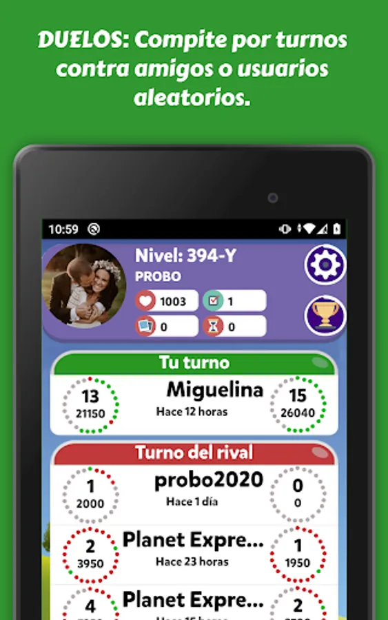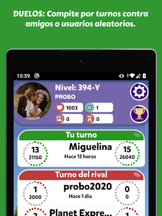 - Duels: compete in turns against friends or random users.