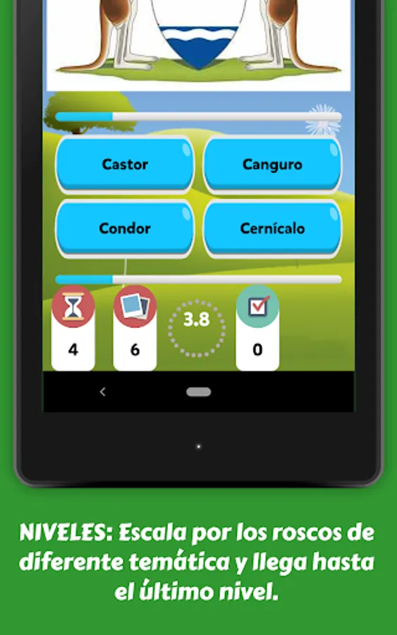 Go overcoming each donut with a different theme. In this mode, only the success is worth to continue playing, although you will have the help of the wildcards (50%, double time or sure success) that you can get by roscOros, as a gift (at the end of each level) or by buying them in the store.