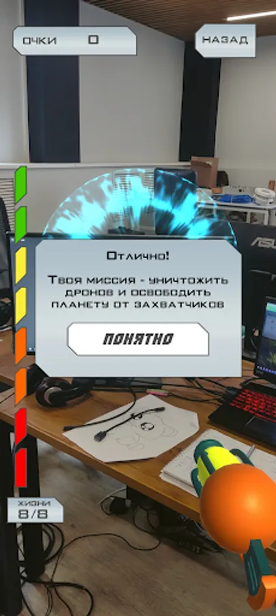 Drone Attack is an augmented reality game in which you have to destroy drones by aiming at them with your phone and dodge the shots.