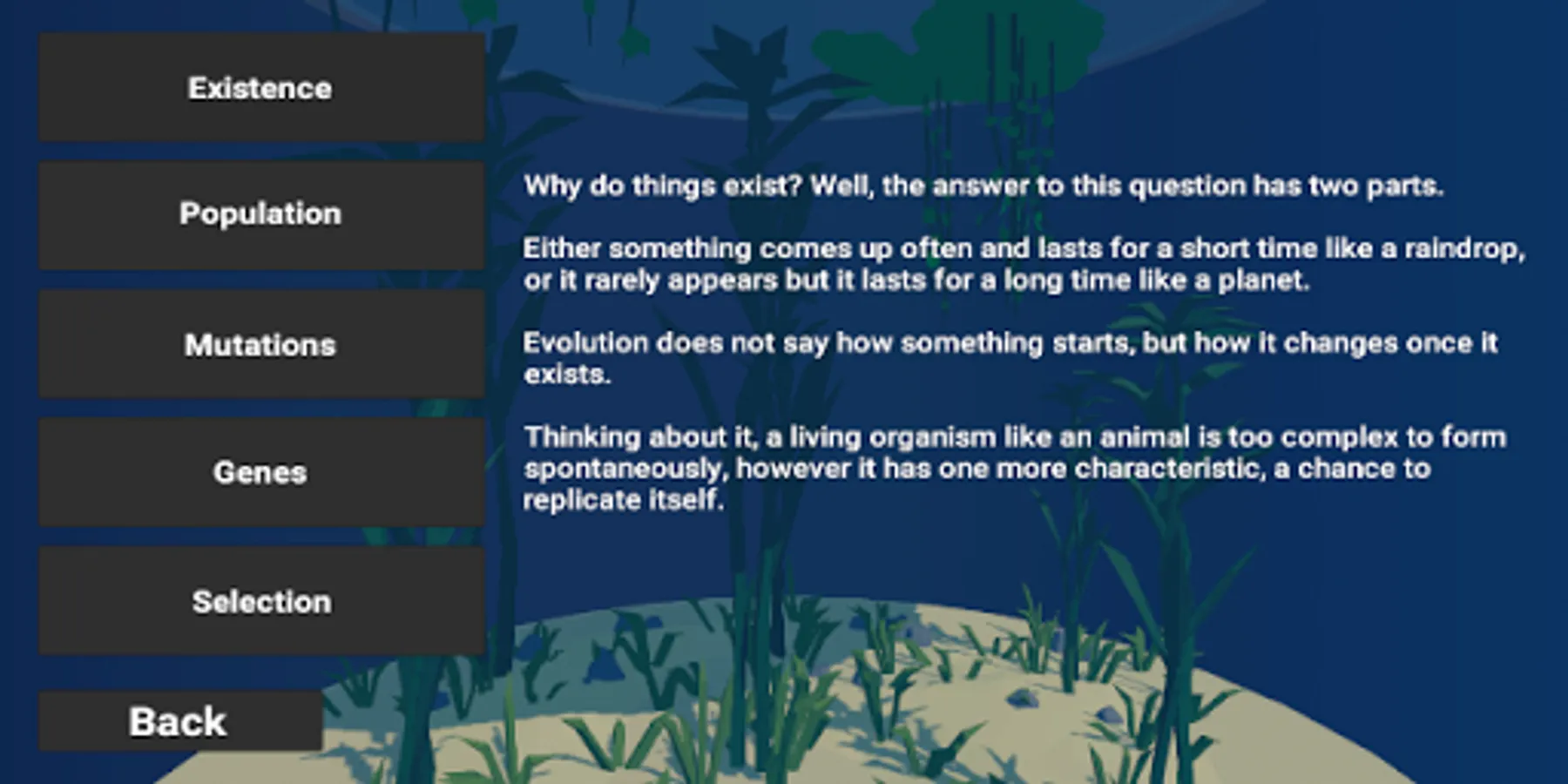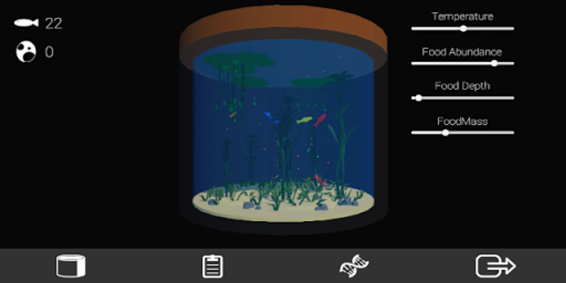 BioGen is a natural selection simulator designed to provide the user with a summary understanding of how natural selection and evolution work through an interactive environment, where the user can define all the variables and watch a population of small digital fishes evolving during the time.