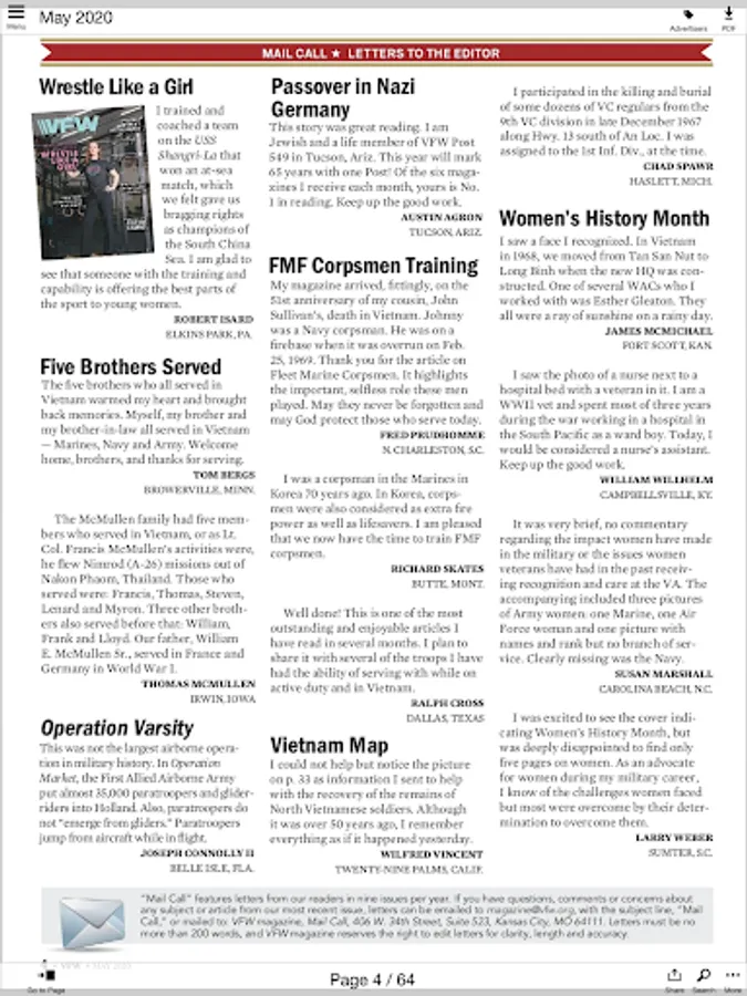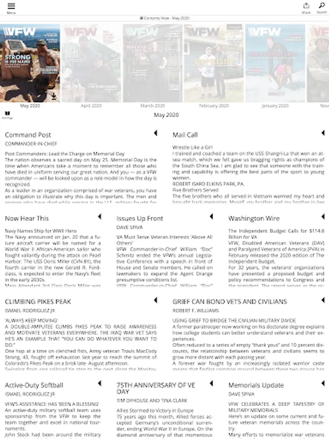 Digital issue of the official publication of VFW, highlighting veterans issues and military history.