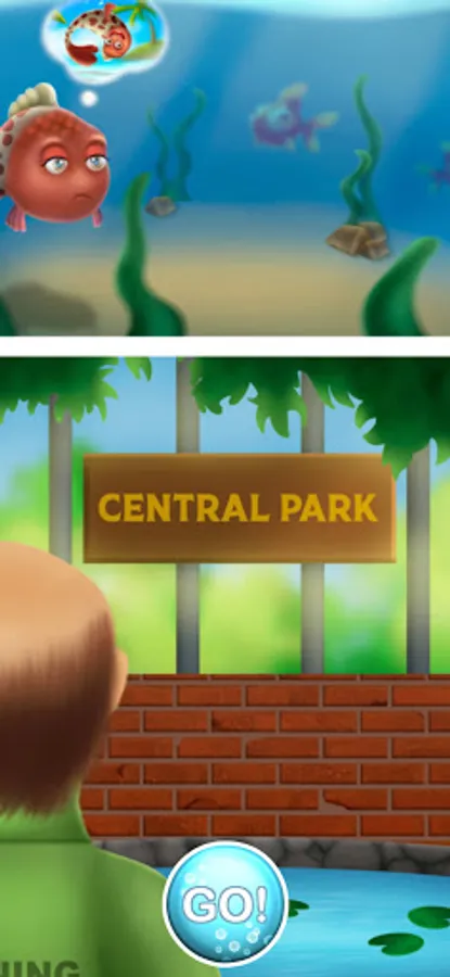 The game tells the story of an unfortunate fishy whose fate has led her to live in a small artificial pond in Central Park, to the amusement of others. Her main dream is to splash in the river in freedom, in a stream that takes her to the uncharted distance. Will a fishy be able to fulfill its dream? Will life give her a chance to change everything?