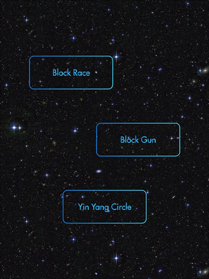 - Yin yang circle: tap to change rotate direction, get coin with green circle, lose if collide with red block.