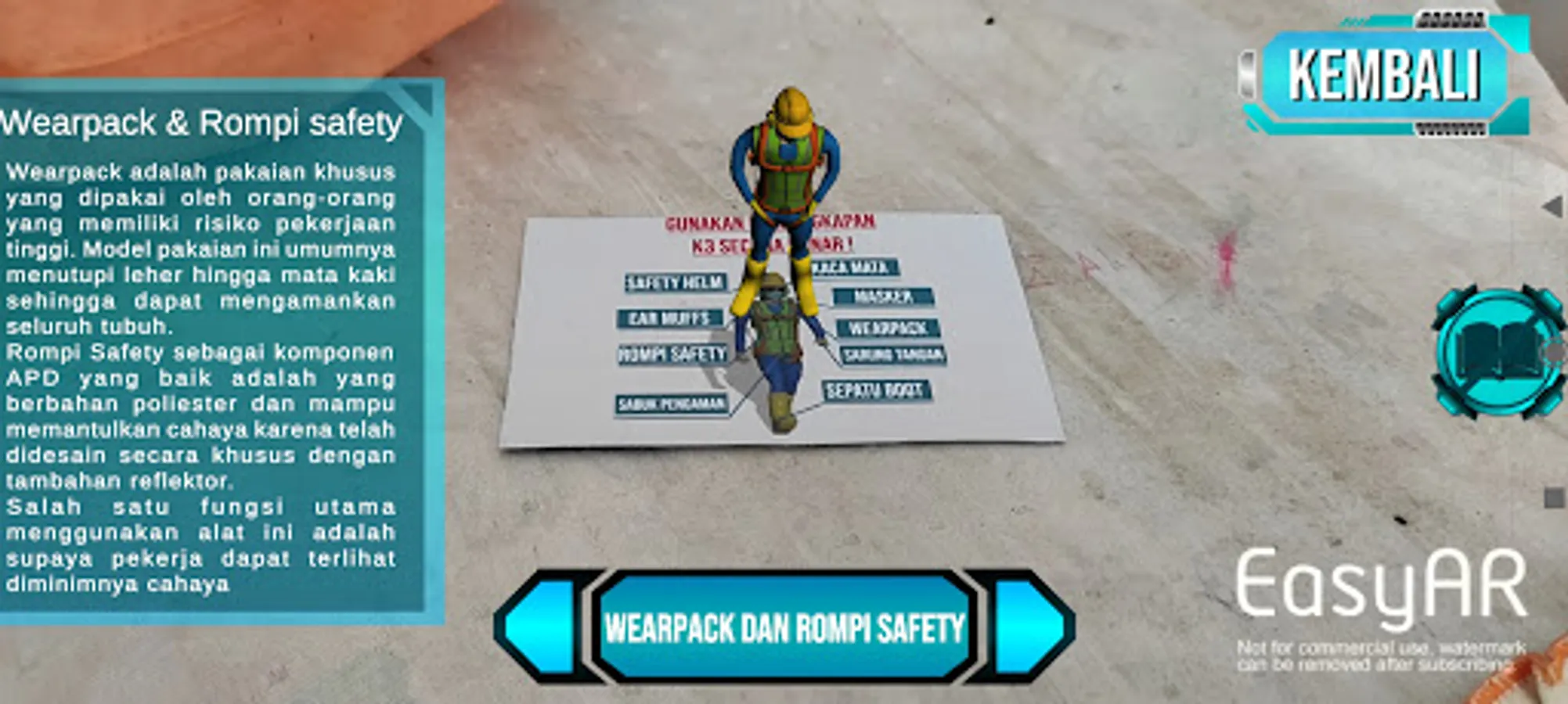 Si Peka (Augmented Reality Construction Service Simulation) is an application that you can use to learn about work safety in the construction sector. with this application you can see the use of work safety tools using Augmented Reality technology. besides being able to see a simulation of work safety. You can do Quiz and Puzzle related to work safety. to use scan you can scan the last image in the image information above