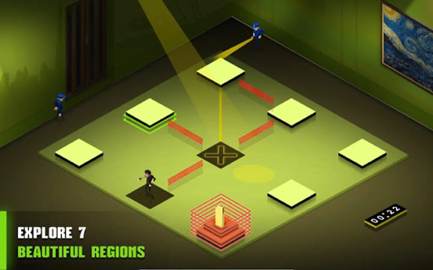 The game consists of various puzzle elements like collecting keys , activating/deactivating tiles , floor traps and restricted entry and exit to various bases. All of this fun is packed in 70+ levels of simple puzzle solving fun where we guarantee only one thing : you can't avoid being caught !