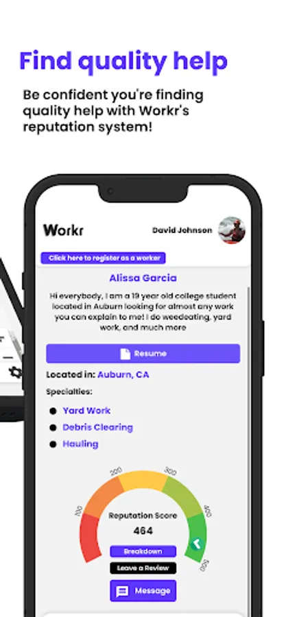 But Workr isn't just for those in need of help. For workers, our platform is a great way to find local jobs and build a reputation for quality work. Workers can create a profile, showcase their skills, and find work in their area. With our unique "Reputation" system, workers can build a reputation for quality work and reliability, which can lead to more jobs and more business. Our platform is designed to make it easy for workers to find new clients and grow their businesses.