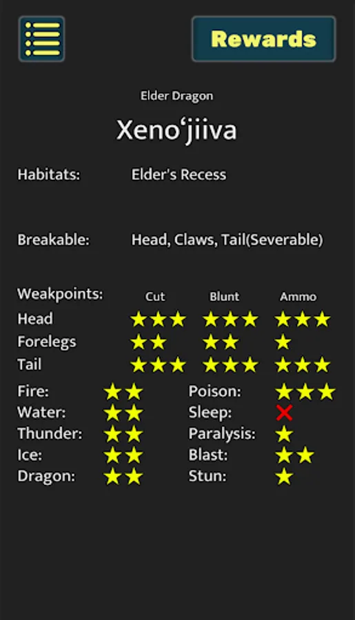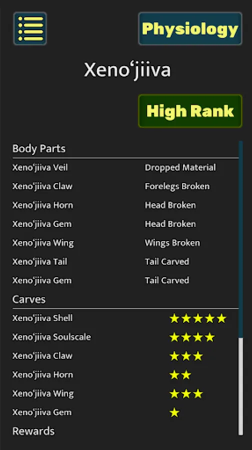 - Large and small monster locations, weaknesses, item drops, carves and quest rewards for both high and low rank
