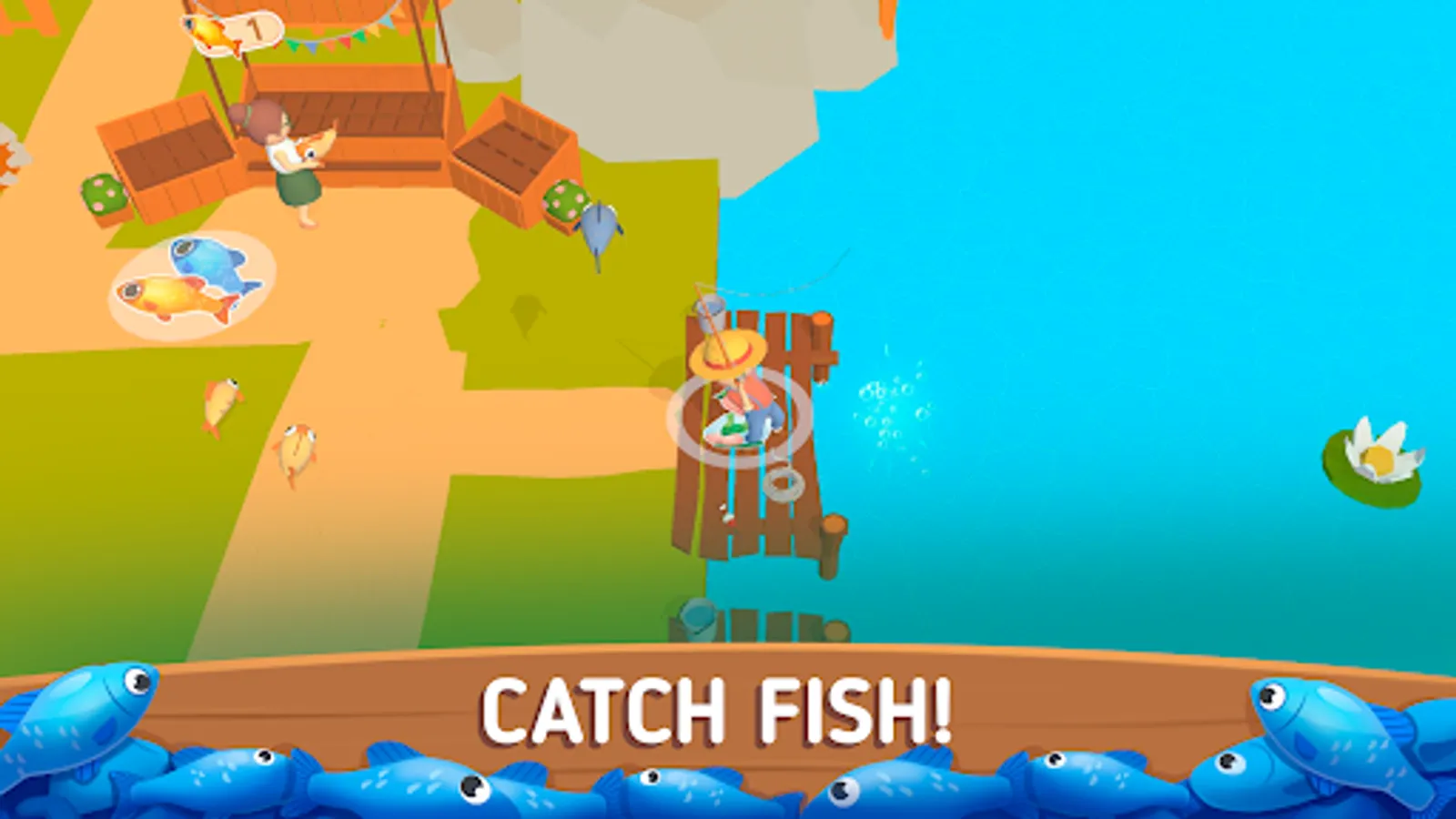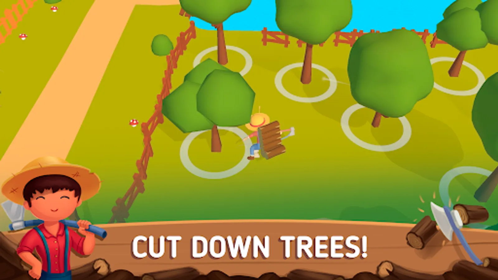 If you want to take a break from harvesting, then you can feel like a lumberjack, pick up an ax and go get wood with which you can improve your builds. You can also build a fishing bridge and catch fish. Once you start selling fish, your customers will buy all of them and you can hire a fisherman to fish for you so that they are always available to your customers.