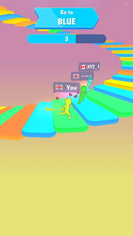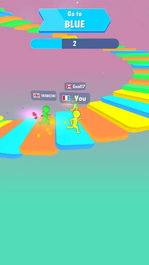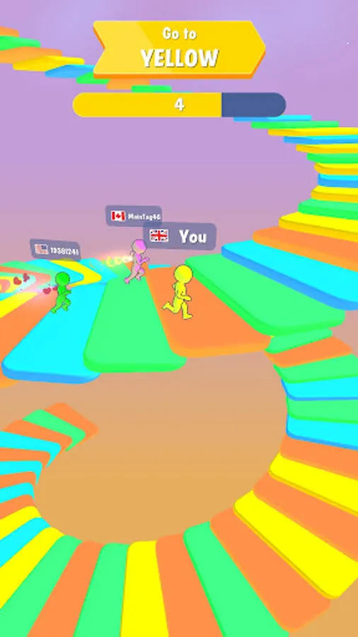 Choose the country you want to compete in this race, choose your hero and start the race. Once the race has started, a color and a countdown will be displayed at the top of the screen. In order not to fall down when the time runs out, stand on the platform of the color of the time counter. Try to run fast, but always stop in time to avoid falling.