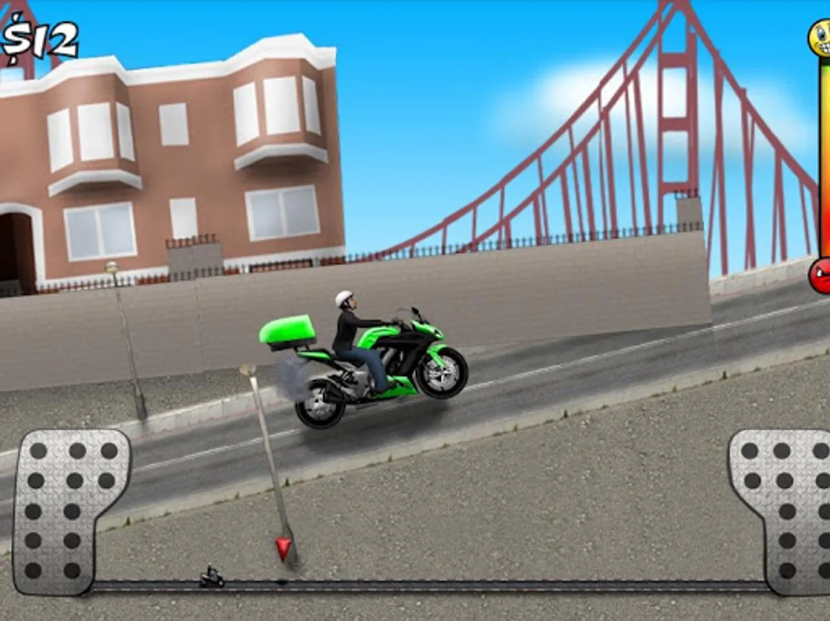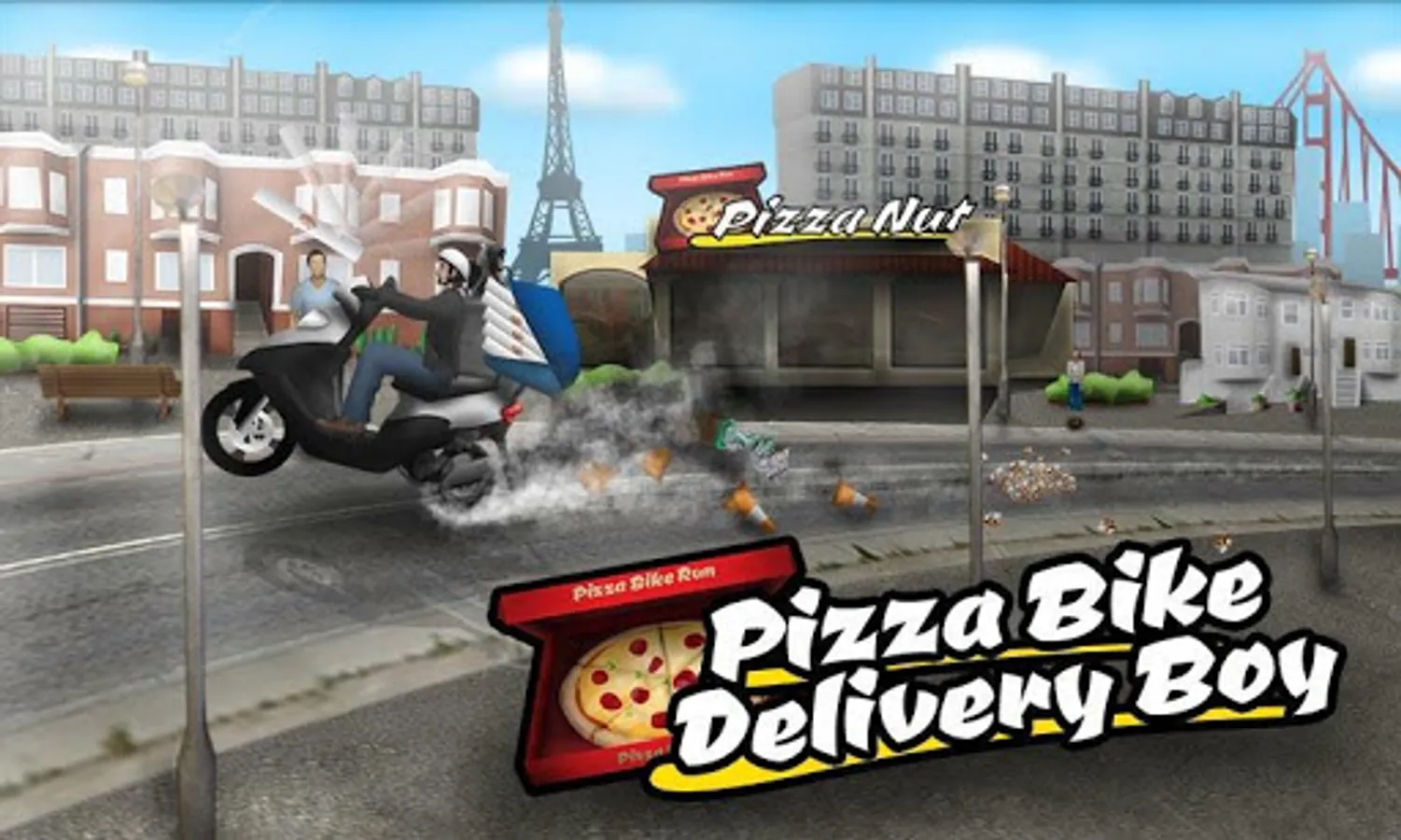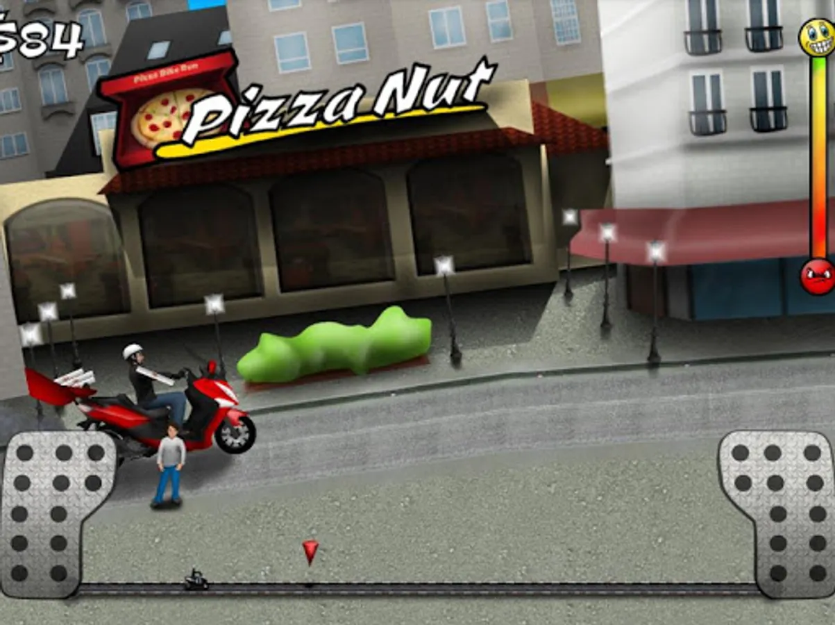 Your goal is to deliver pizzas to the client as fast and as hot as you can without letting them fall from the bike.