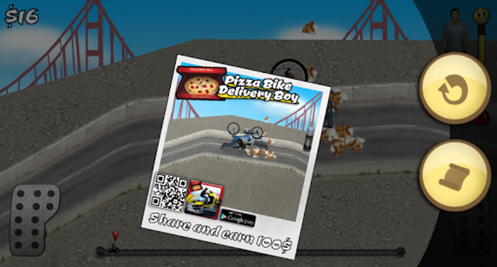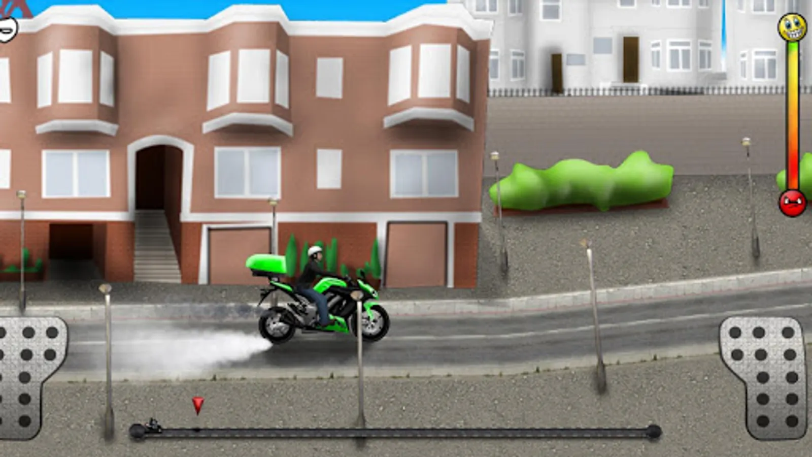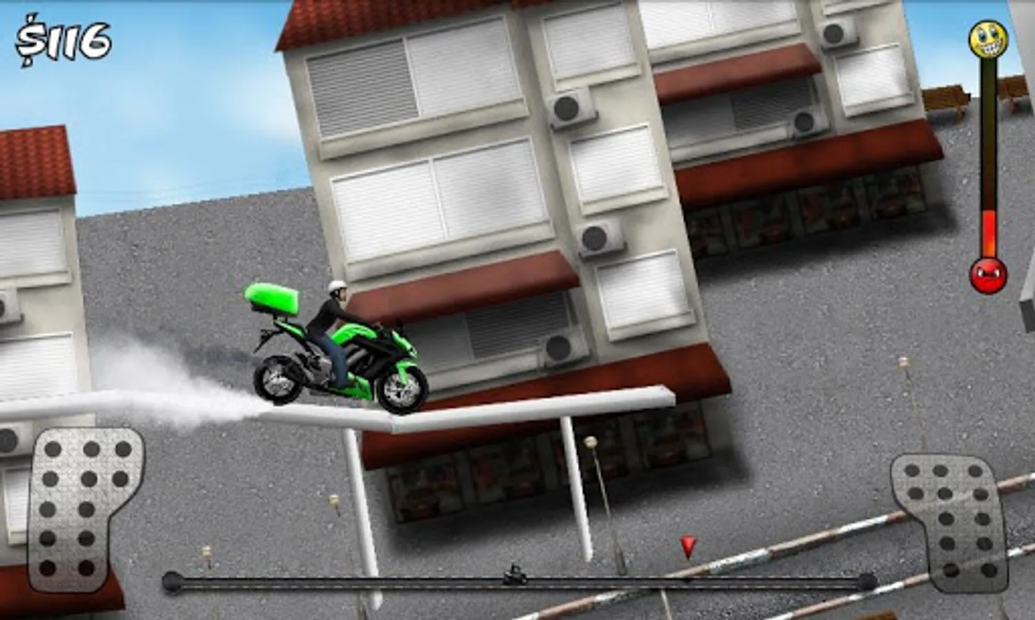 Your goal is to deliver pizzas to the client as fast and as hot as you can without letting them fall from the bike.