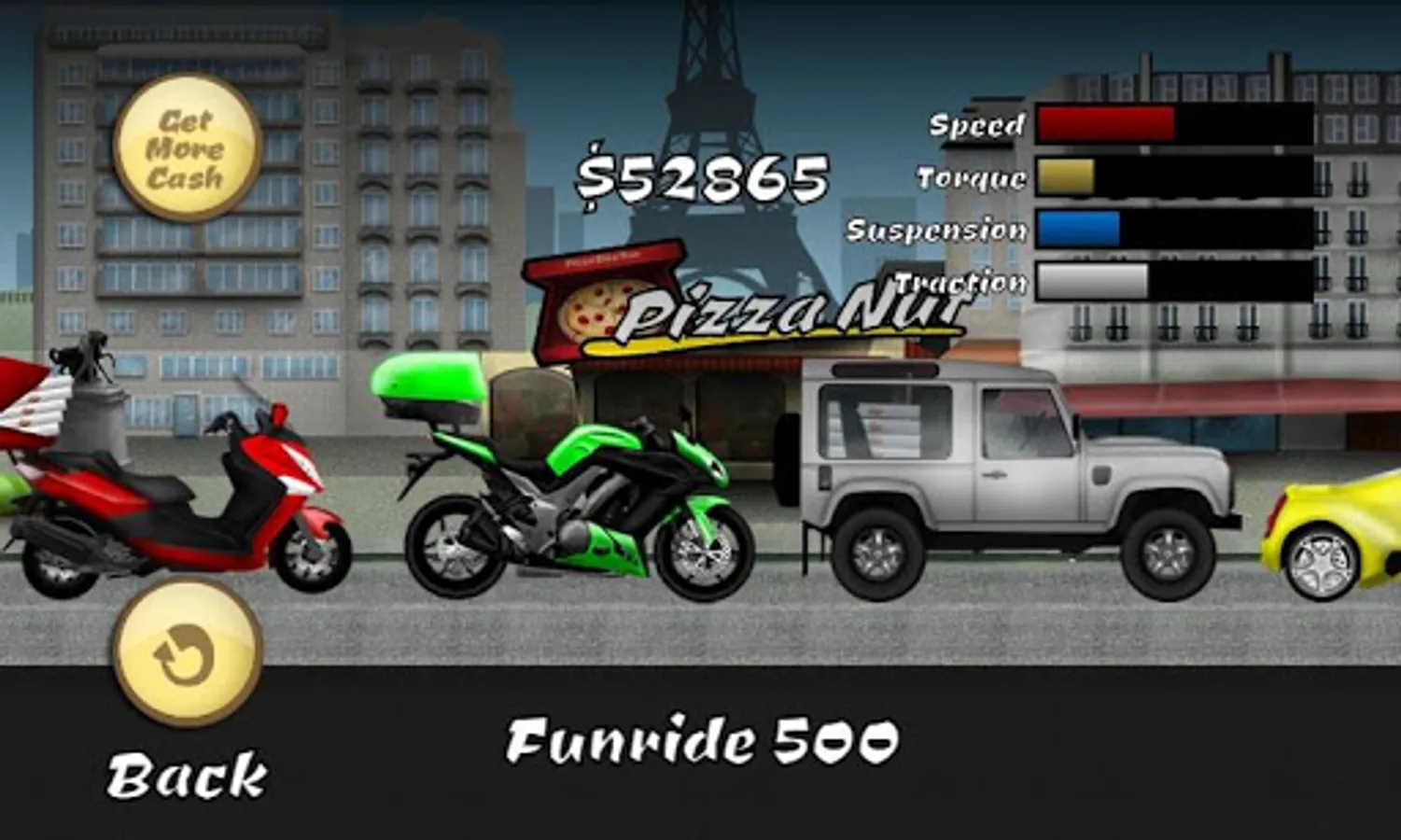 * Ride in 5 different worlds (You can deliver pizzas in California, Paris, Tel Aviv, Sahara Desert, Forest and many more to come).