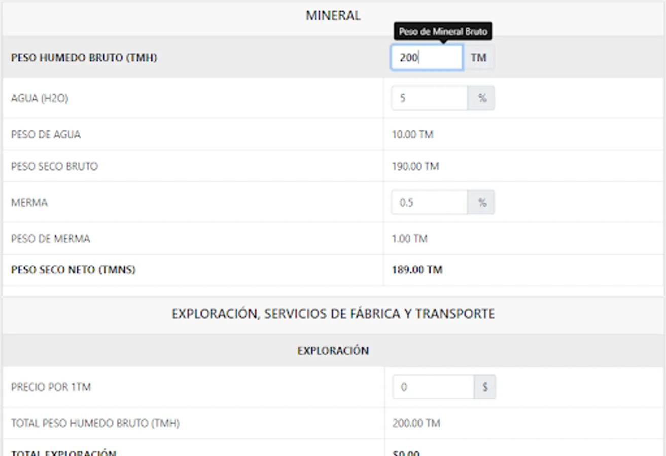 - calculation of the transport of the mineral to the extraction and processing plant;
