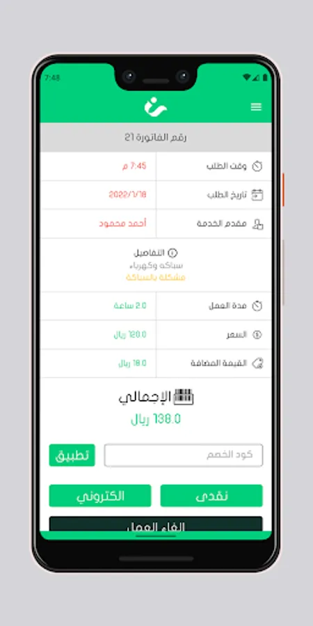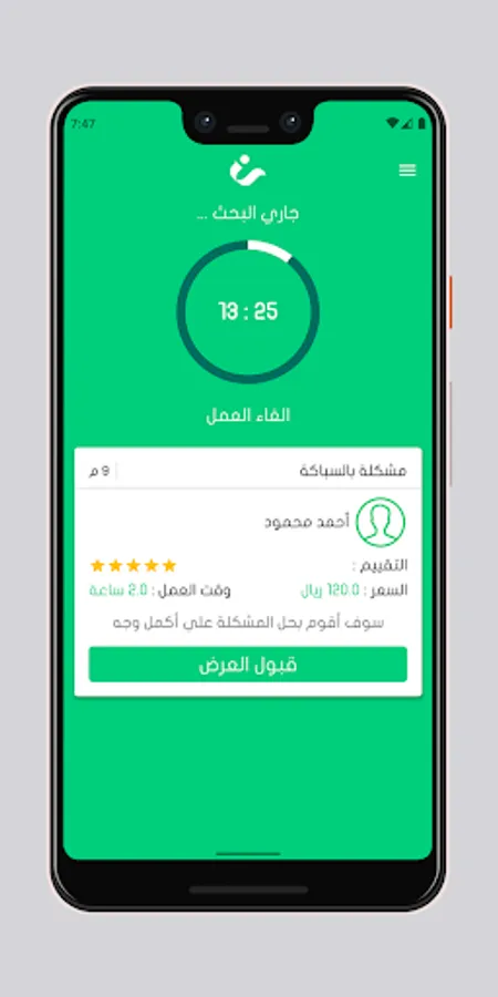 The (Iserve ) app shows the beneficiary all the offers containing (the price - evaluation of the service provider - the distance - Instagram - maroof ) and the customer can choose any offer that suits him among those offers.