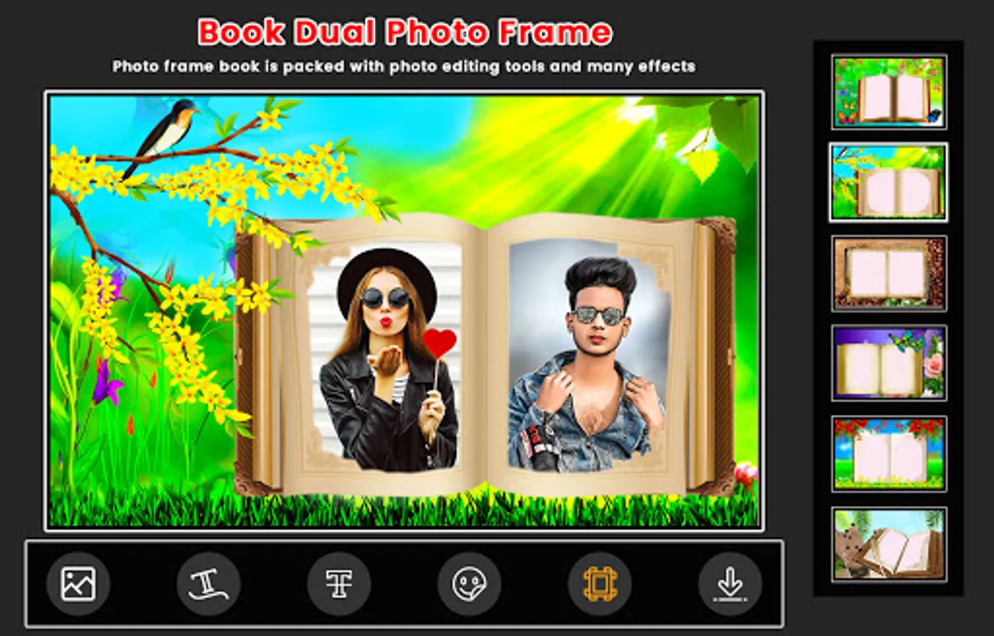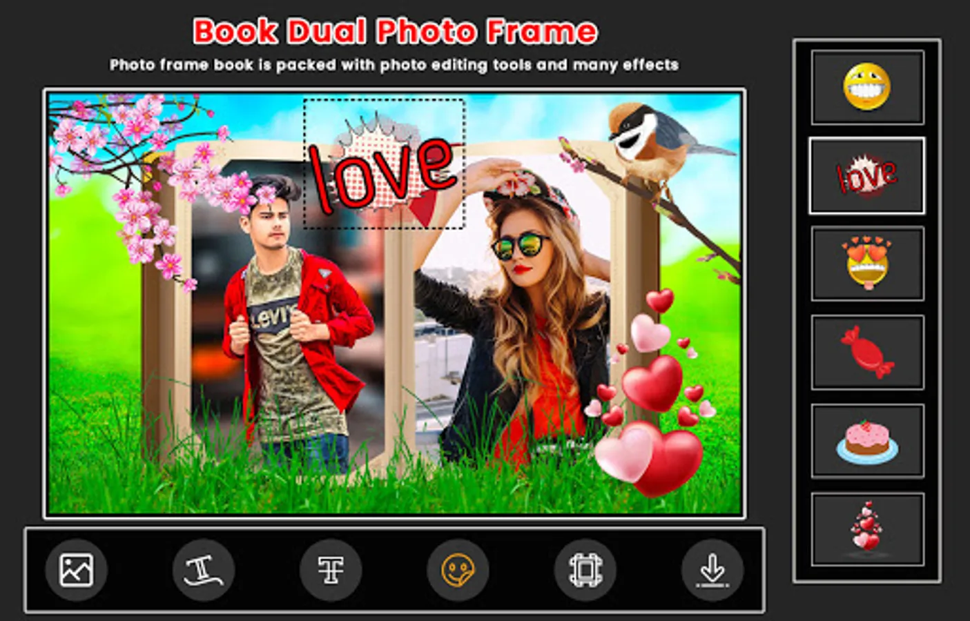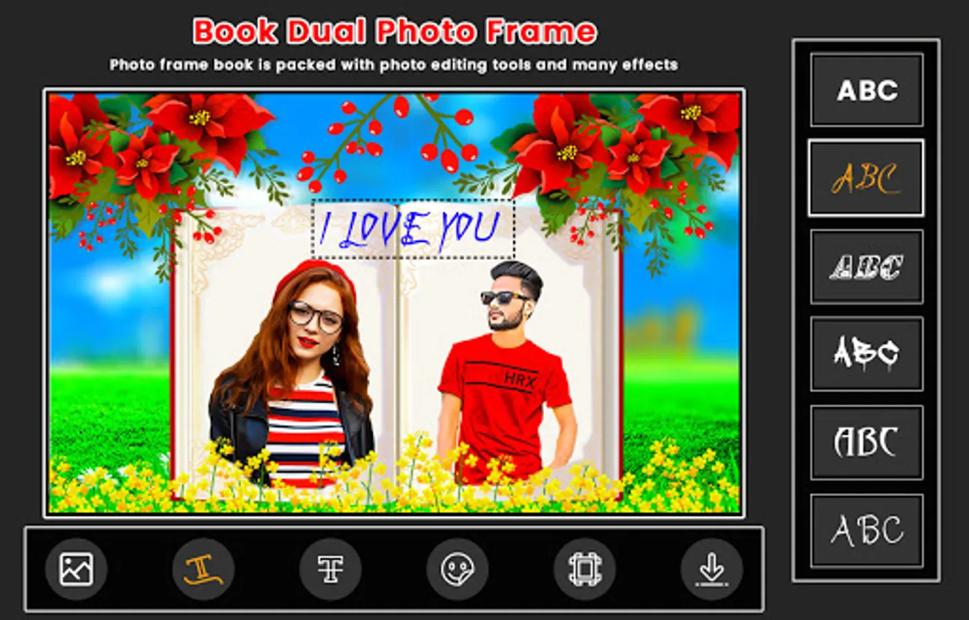 ♦ I Love You dual frames help you to edit and make collage of your photo over different books photo templates.