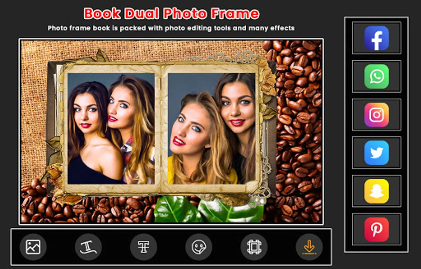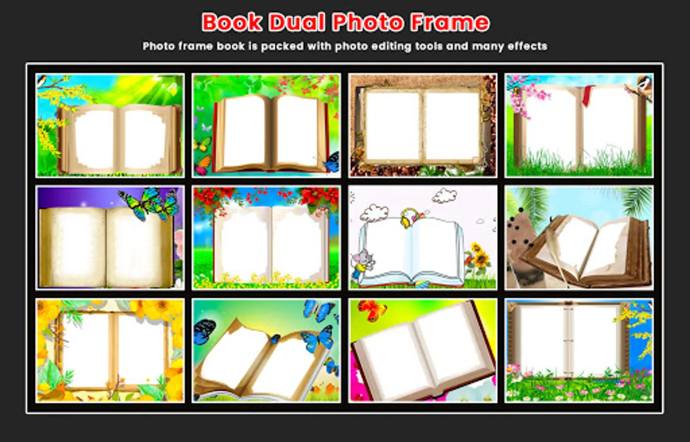 There is a huge collection of Photo Book Dual photo frames that will make you feel like you are in the beautiful Photo Book Dual. The Photo Book Dual Photo Frame app is making of your photo with many Photo Book Dual frames.