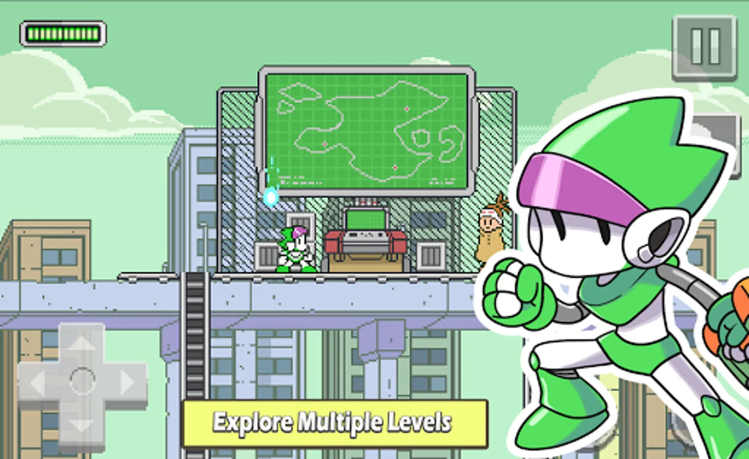 - Game play is touch screen based. You jump and shoot. You can charge your blaster and do more damage. There are upgrades you can get that will make your journey much easier.