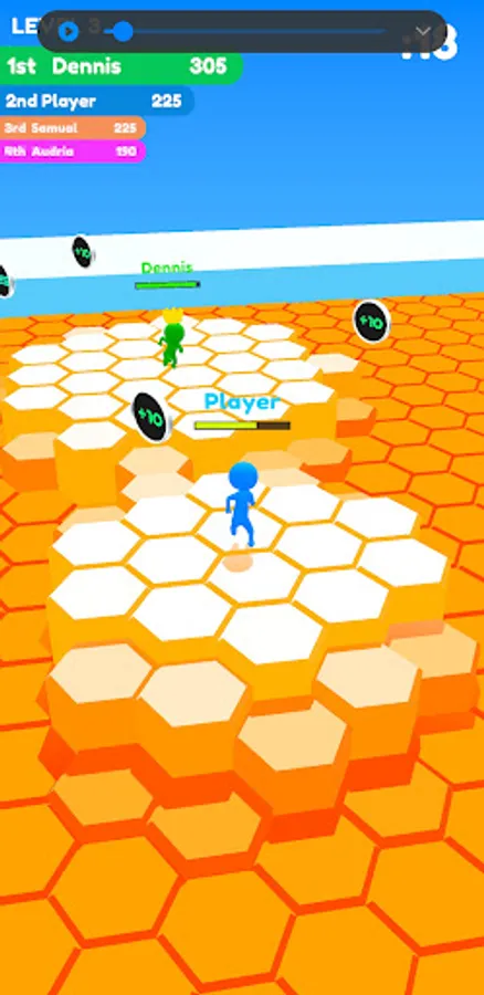 Race on top of rising and falling pylons to collect powerups - and survive with the highest score!