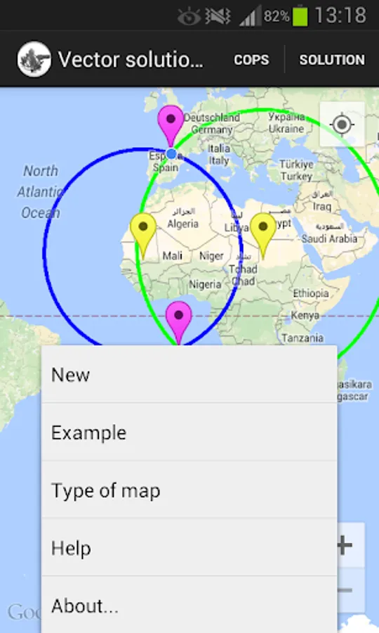 Use this app to calculate the two solutions, and to plot the circles of position, or circles of equal altitude on a google maps.