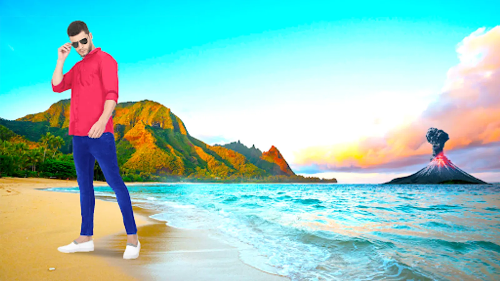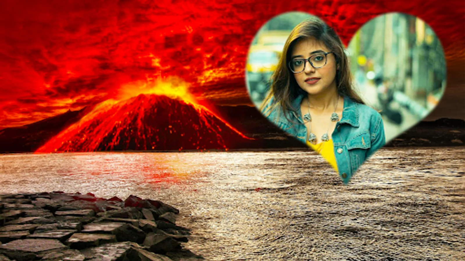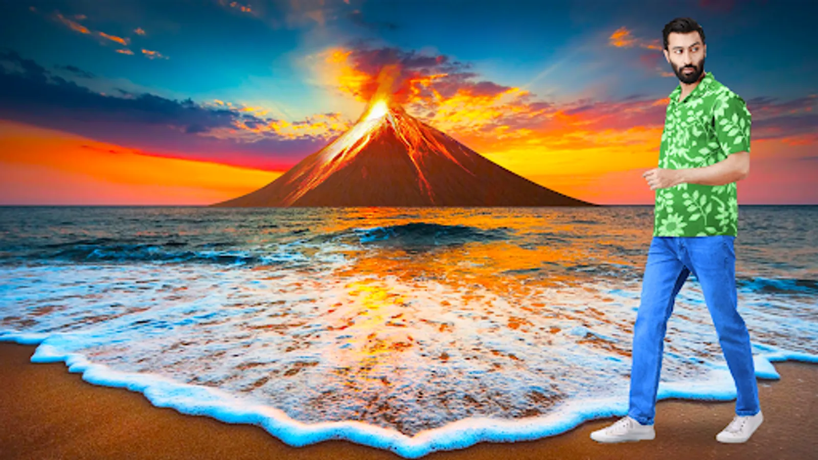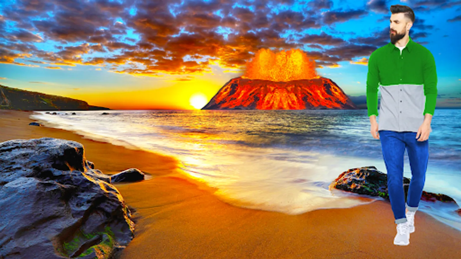 1. Select a photo from the gallery or take a selfie with your device camera in the volcanic island editor app