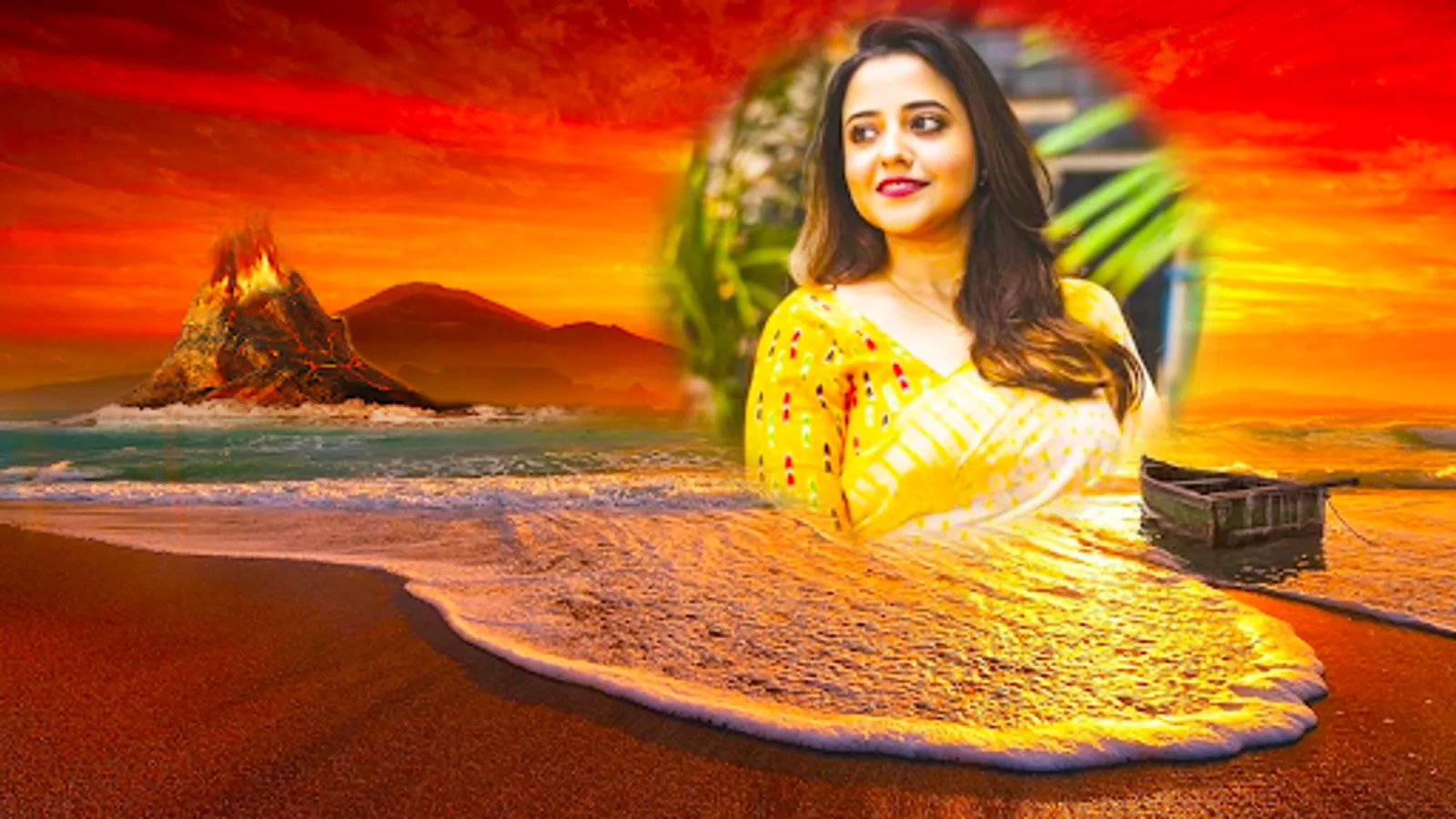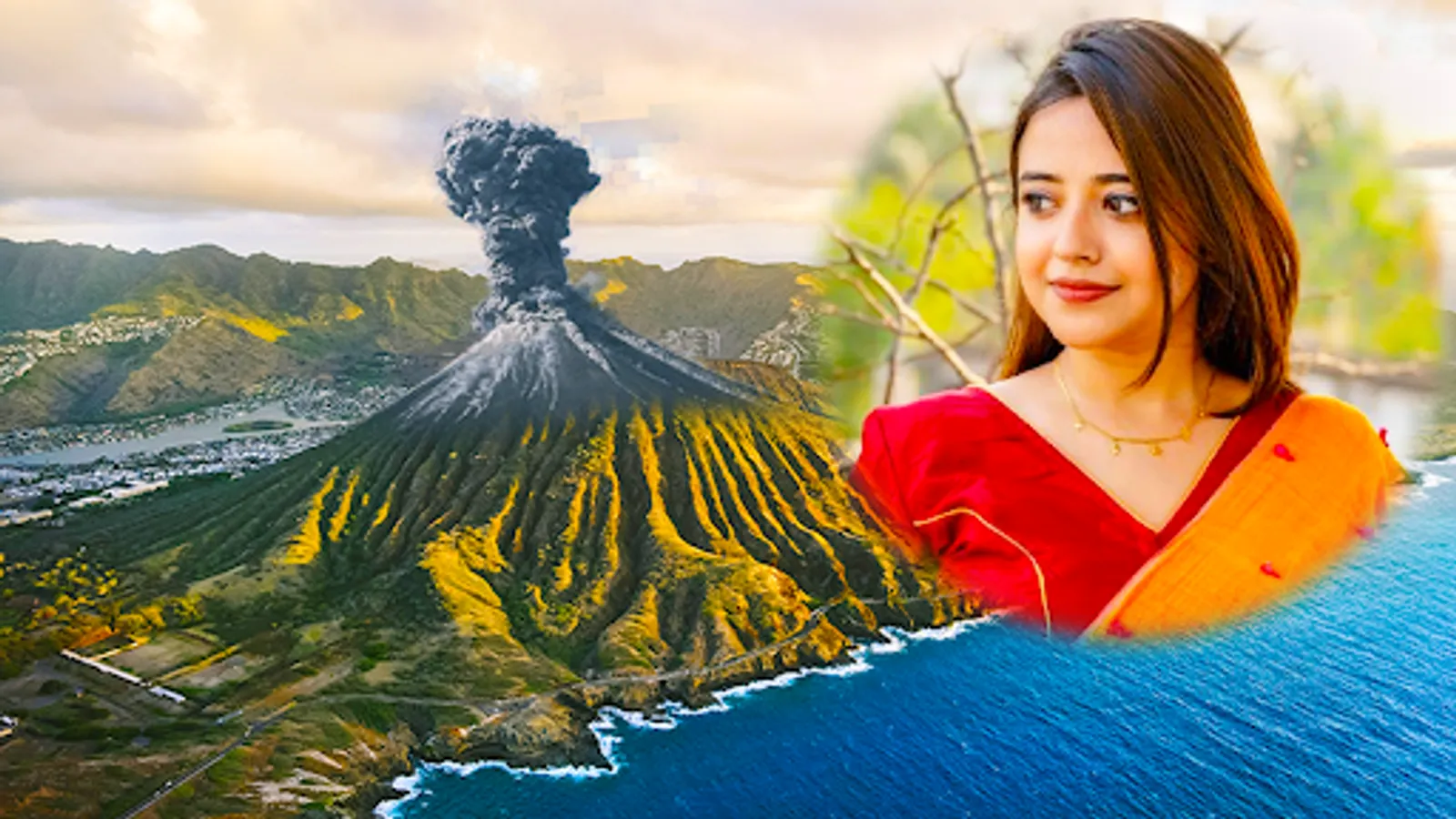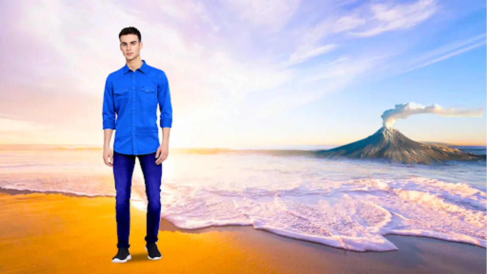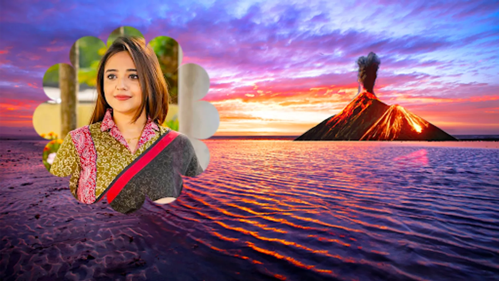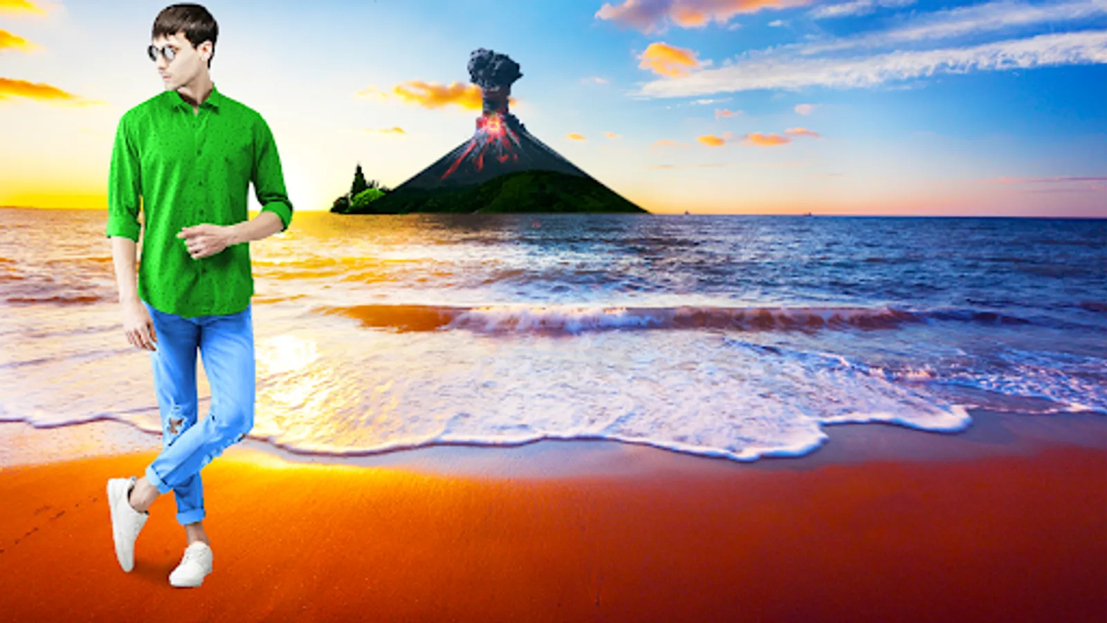 1. Select a photo from the gallery or take a selfie with your device camera in the volcanic island editor app