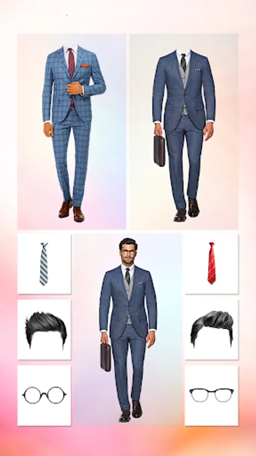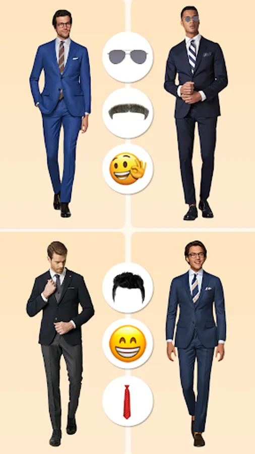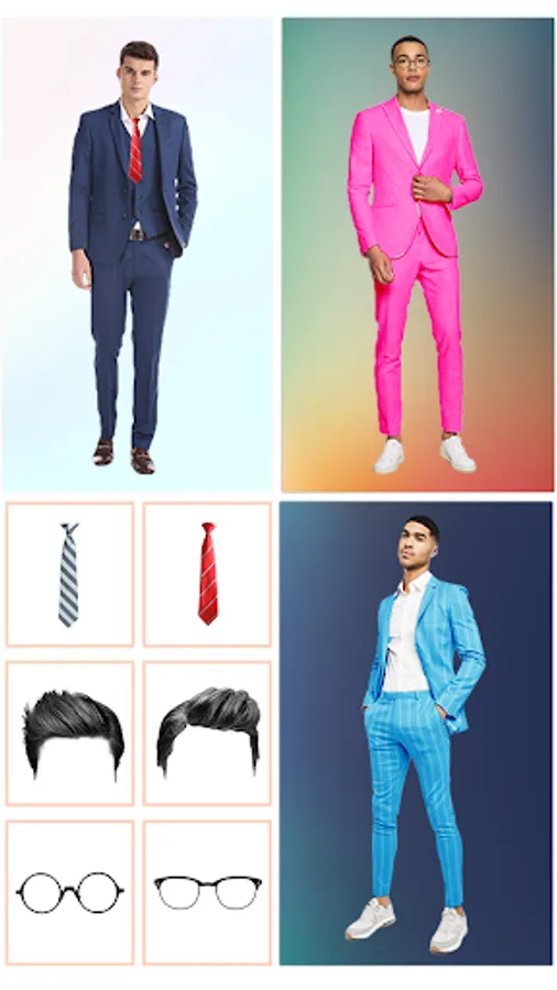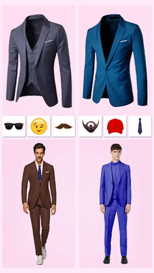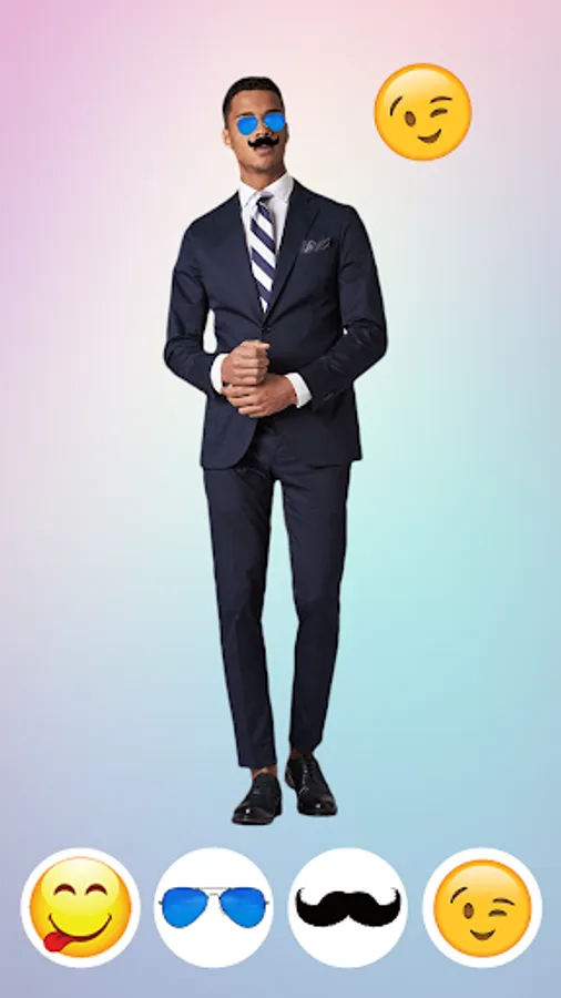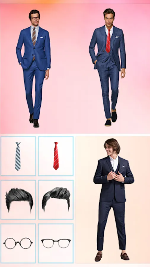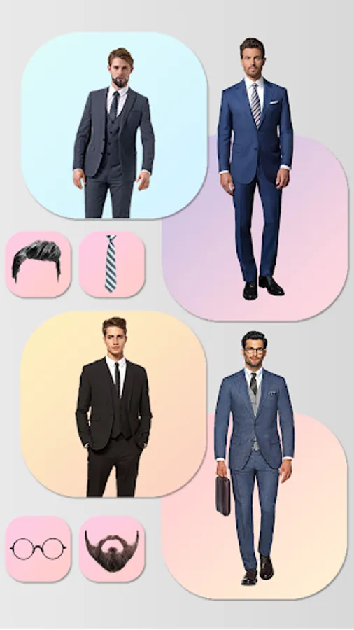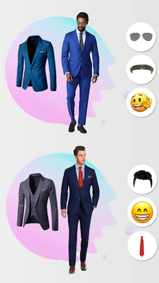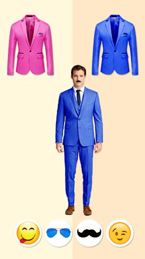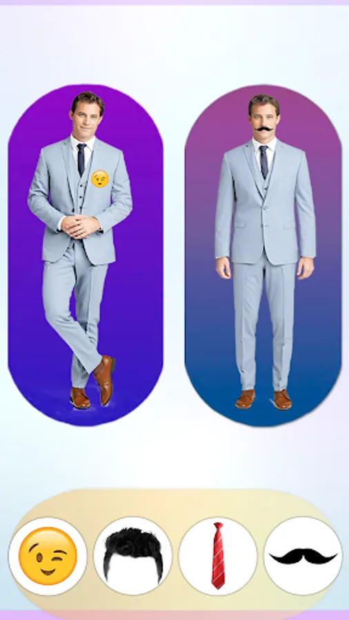• Select and set men’s suits and add any background with your photo. Alternatively, either leave it with a white background or add any single color background from the list.
