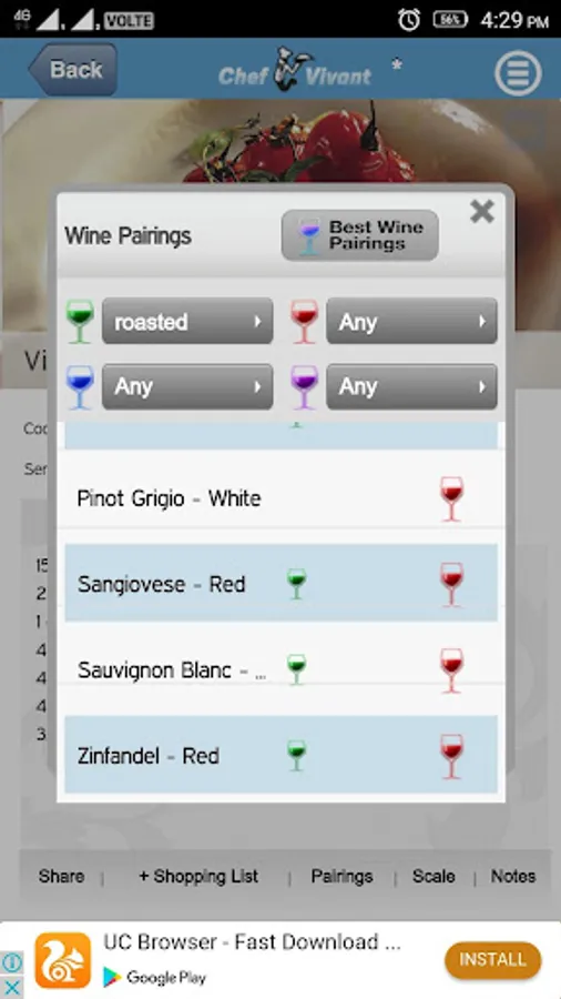 • Professional SOMMELIER WINE PAIRINGS for appetizer, entrée and dessert recipes