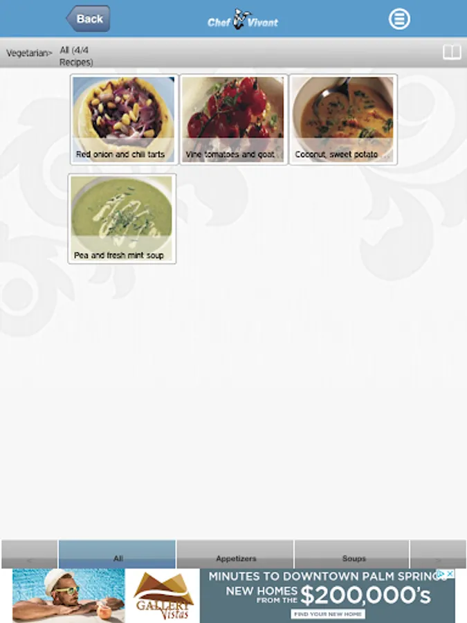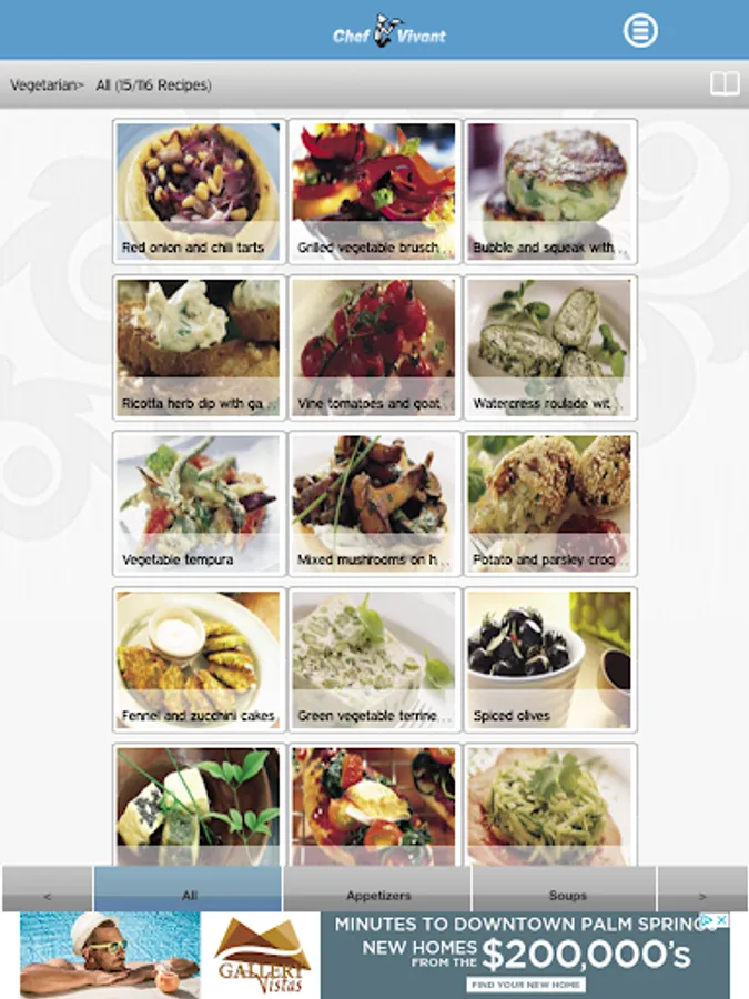 Chef Vivant’s Vegetarian Recipes App creates a pleasurable cooking experience by supporting interactive features, including: