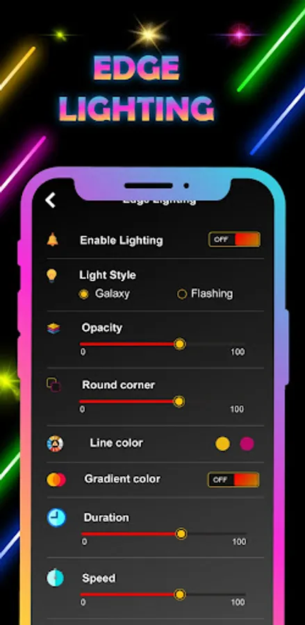 3d Edge & Border Light Screen makes your screen attractive by thyme lightening of different colors on edge screen of your mobile phone. Edge Lightning on your edge screen on receiving the notifications which will beautify your screen of mobile.
