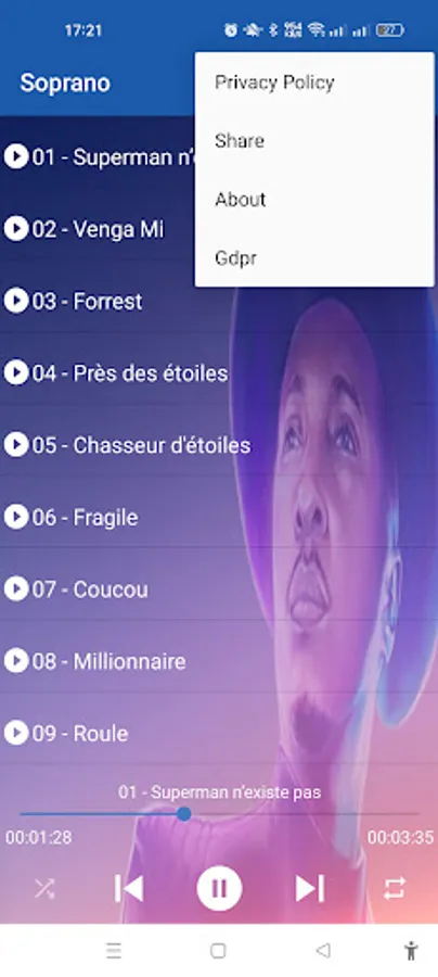 Dans cette application, vous trouverez les meilleures chansons et nouveautés de Soprano. Téléchargez l'application gratuite sur vos smartphones pour une durée illimitée et profitez des meilleurs hits avec un son de haute qualité et sans Internet.