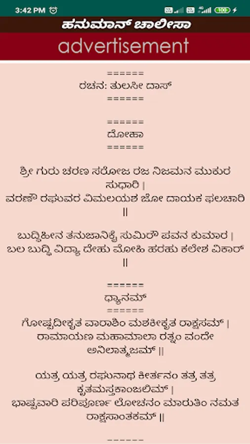Complete OFFLINE version of "Hanuman Chalisa" in Kannada and English language at your finger tips.