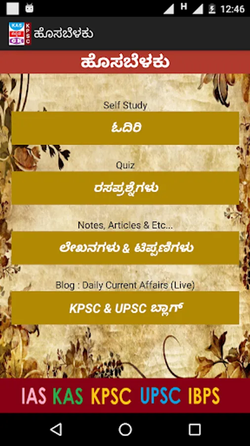 ಹೊಸಬೆಳಕು (Hosabelaku) KPSC UPSC Kannada GK app is 100% KANNADA Application.