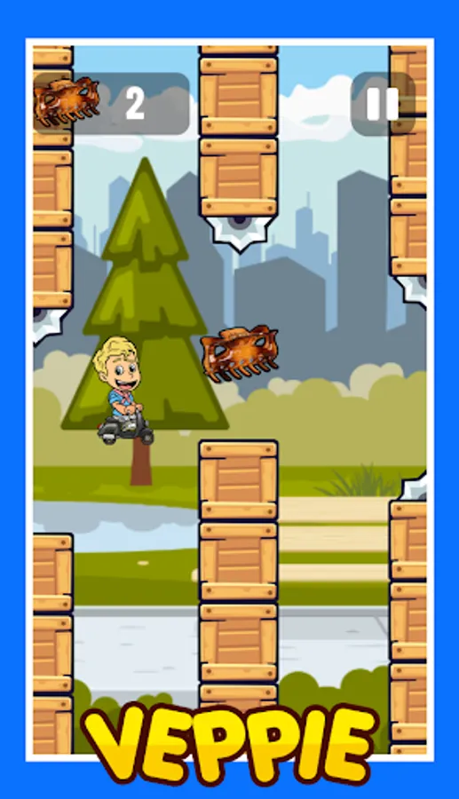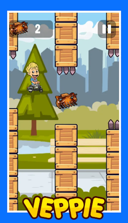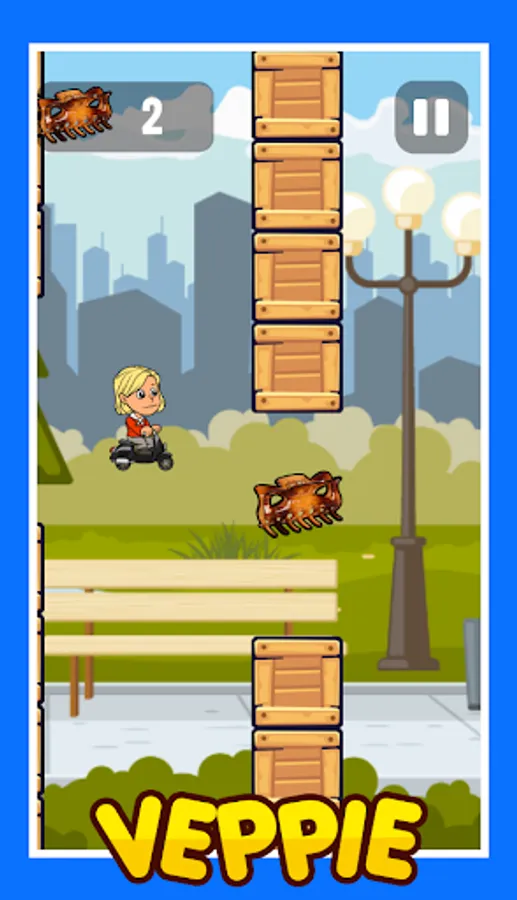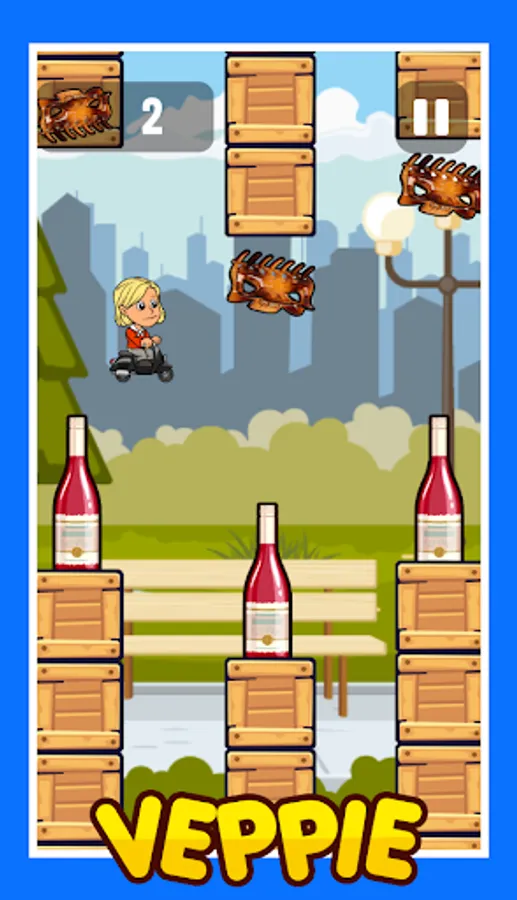 Veppie - Scooter Flying Adventures in the Park, where you need to collect Hair clips and advoid bottles and spikes to survive
