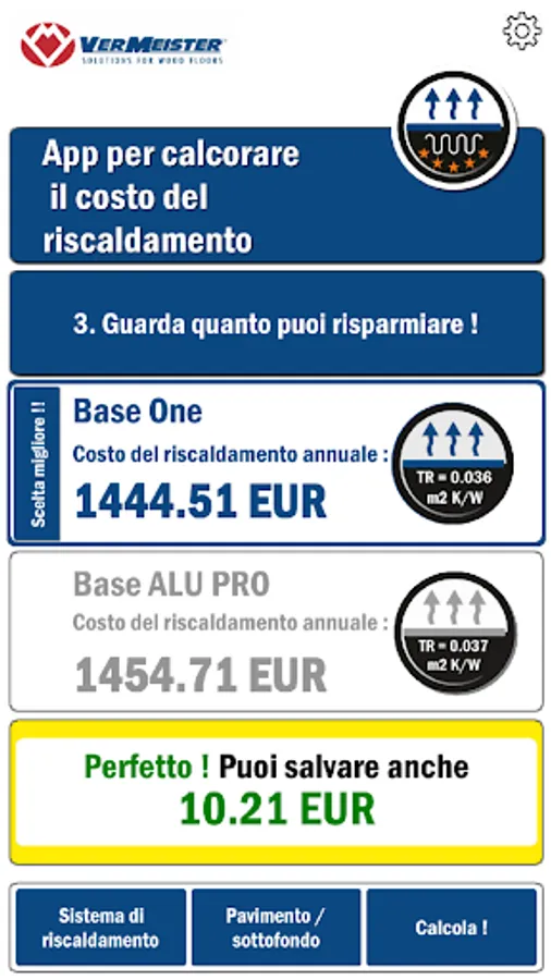 Heating costs are calculated based on a mathematical model of a building with standard insulation, energy costs can be changed in the OPTIONS section. The costs and the estimated difference can vary depending on the installation conditions, insulation, heat loss etc ...