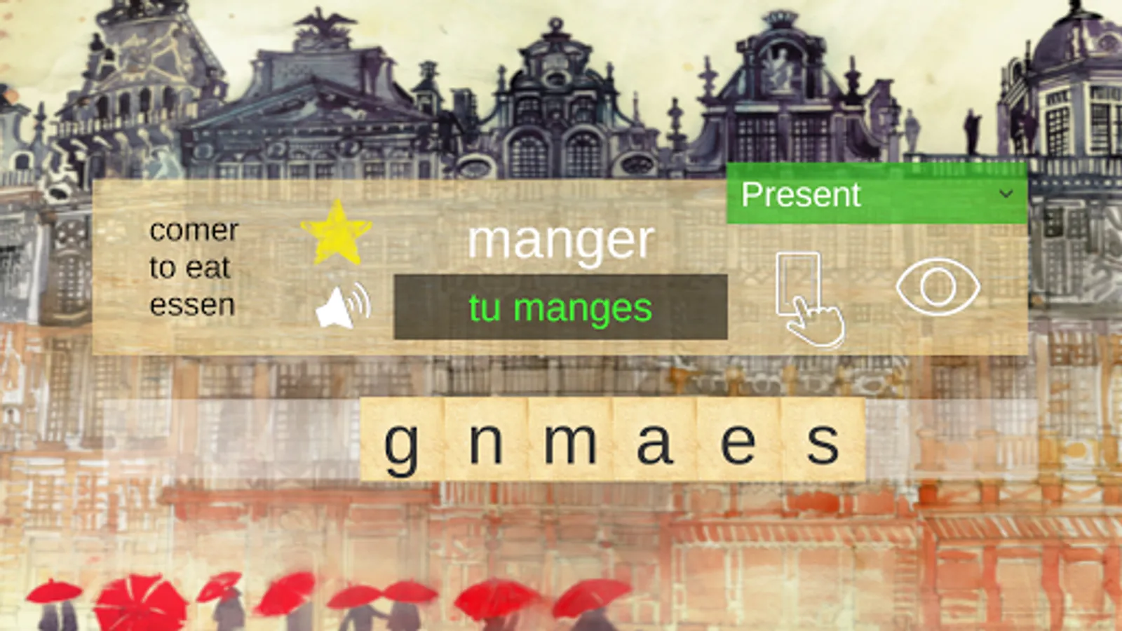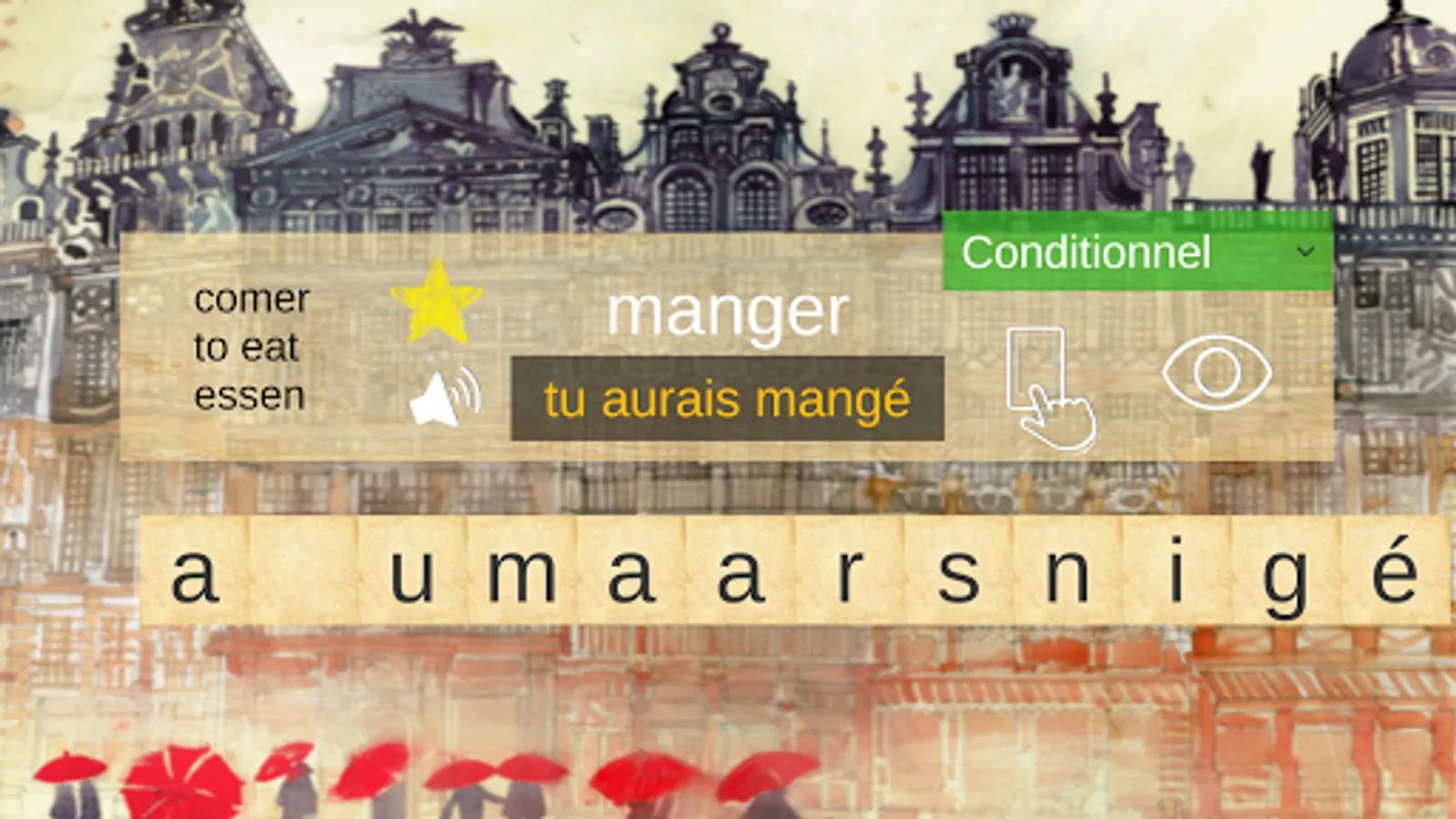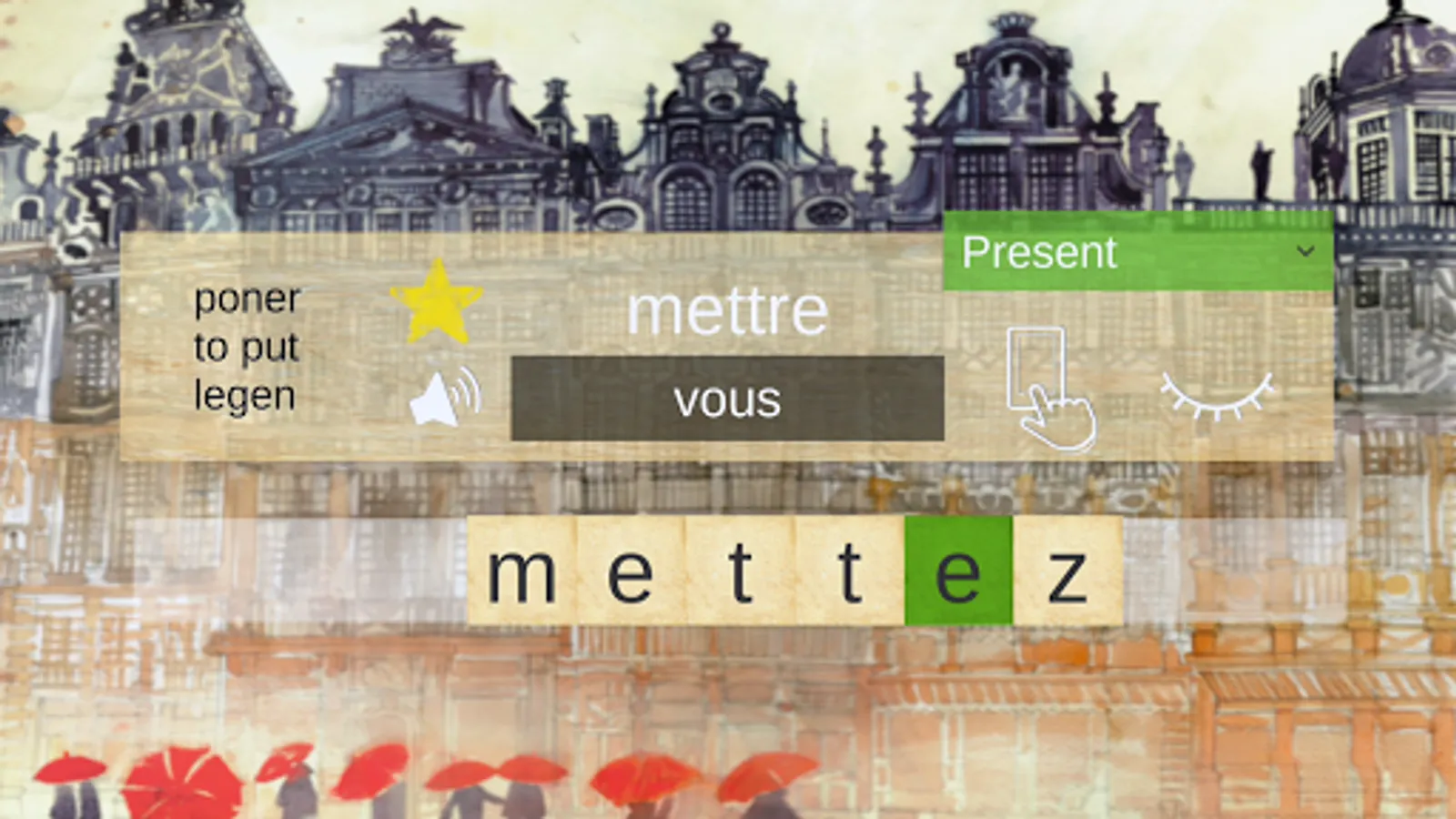 Combine the conjugations of 1 of the 15 conjugation of verbs in French, which offers a fun and simple way to train to learn the endings of the verbs.