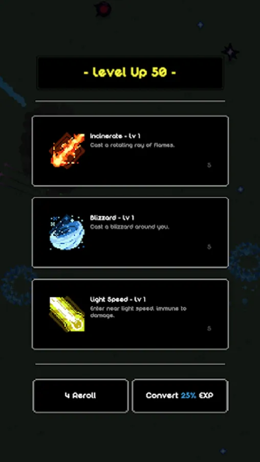 2D Pixel art rougelike/rougelite action game with intuitive one-hand and auto-aim control. Survive for as long as you can with magic spells from swarms of enemies!