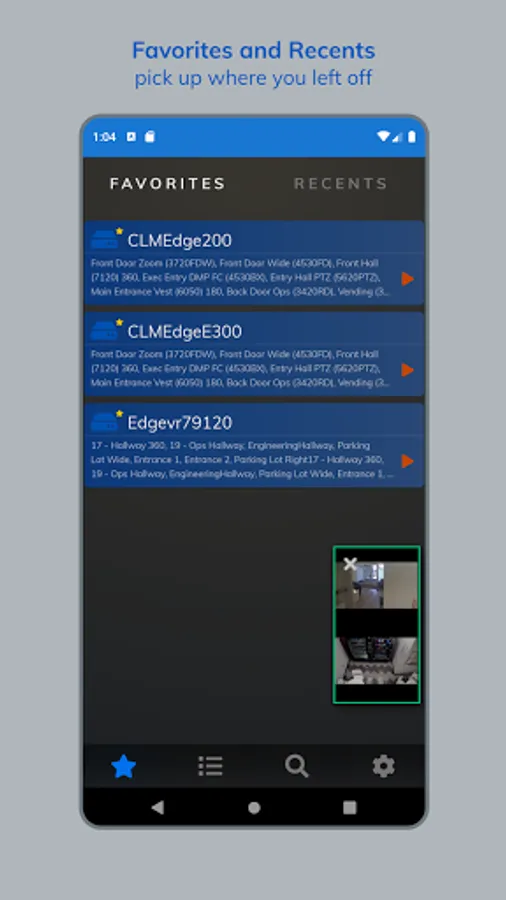 - Shows the last 10 NVR accessed to quickly get back to where you were