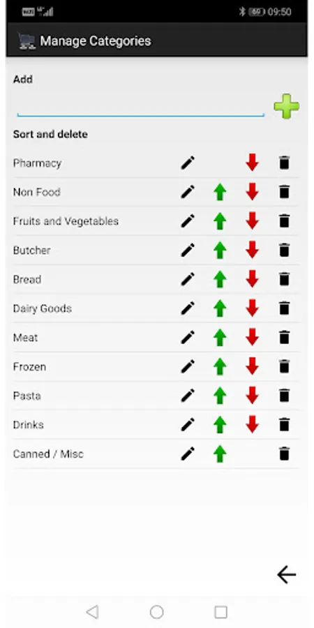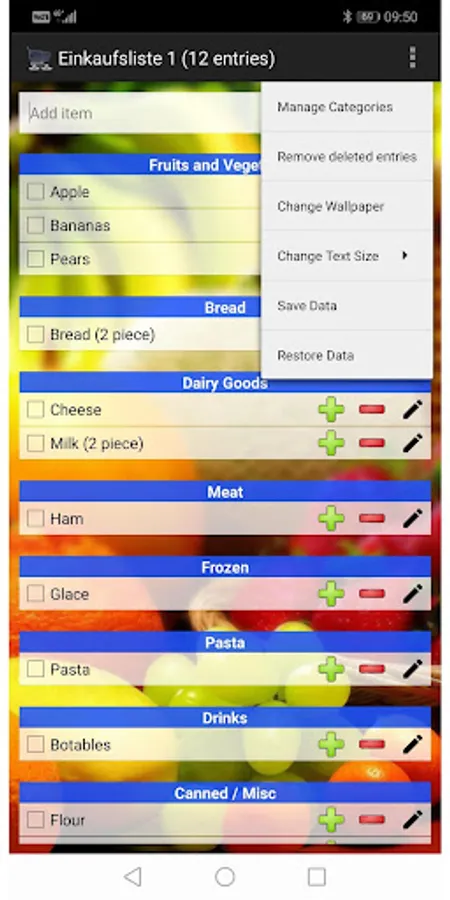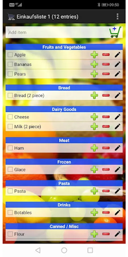 If you need the next time "cheese", then you must not enter the category, because the app knows it already. So you can just enter a "c" and the cheese appears in the selection automatically. A tip on it adds the product to the shopping list in the appropriate category.
