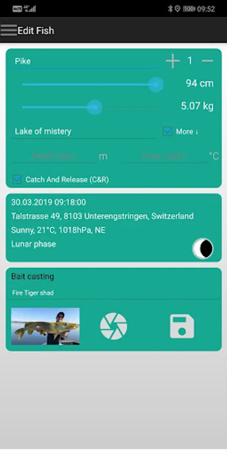 Based on this we built the app, record catches fast with automated data such as weather and the GPS location.