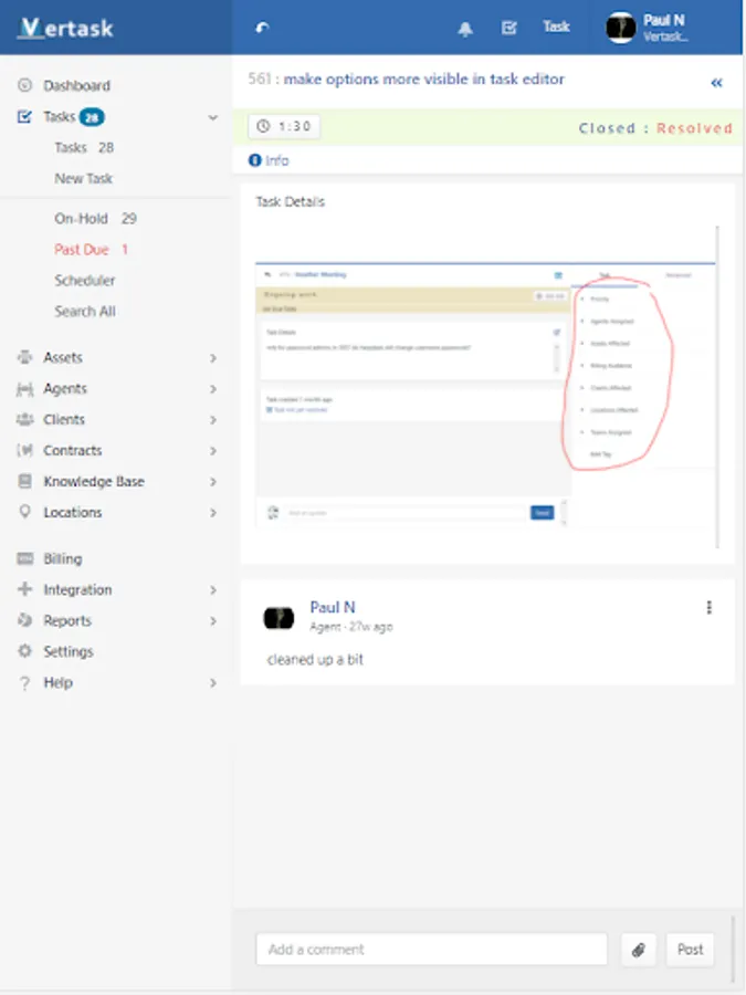 Vertask is a cloud-based ticketing system and task management that allows you to track and resolve your goals and user requests quickly. It also helps you manage your documentation, so you can share it with team members, or transfer knowledge in an efficient manner. You can also keep track of your contracts and set reminders on renewals.