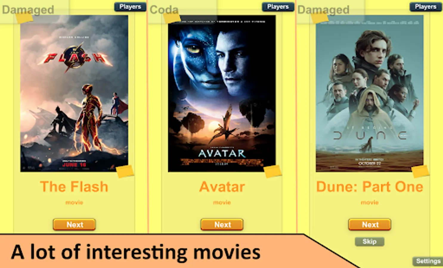Explain the movie to a group of friends and try to guess the most. Games are saved automatically, so you can always continue the game you have already started. Create new games for any number of players. Many movies, cartoons and series are available in the game, in addition, movies that have not yet been released worldwide are available. Game has a built-in timer, which also can be turned off.