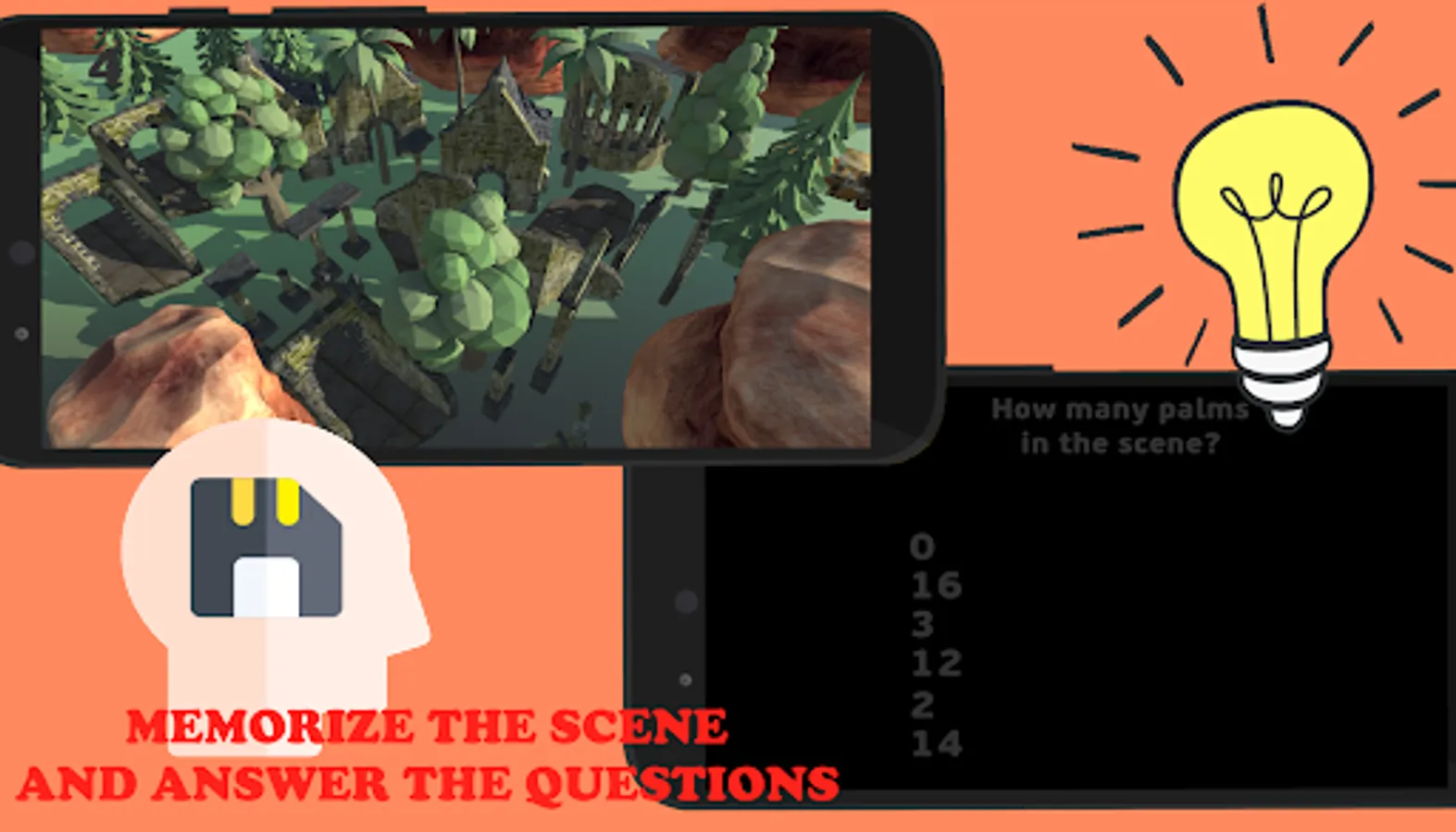 Train brain by playing cool memory games. Memorize the scene and answer the question. But it doesn't as easy as it can seems. You have just few seconds to memorize the everything you see in the screen. Each time you choose the wrong option, the question will be changed. And be sure, questions will be veryy unpredictable. Locations will be changing from level to level, and in addition, scenes built with beautiful graphics and a lot of great animations. Have fun and test your memory!